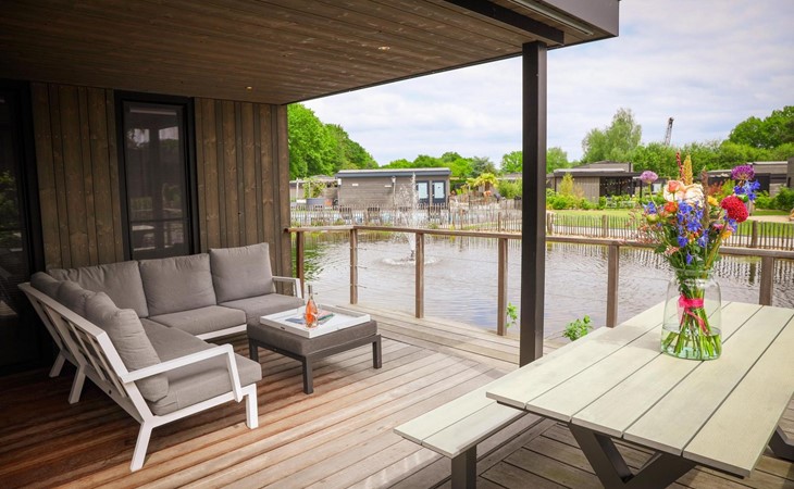 Prachtige luxe lodge aan t water. We hebben t reuze naar onze zin gehad. Het ligt in een schitterende omgeving met prachtige fietspaden.