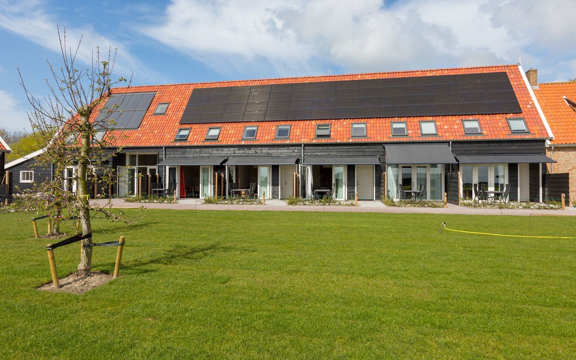 Die einstige echt seeländische Scheune beherbergt nun luxuriöse Ferienappartements. Es wurden mehrere Appartements für jeweils 4 Personen sowie ein rollstuhlgerechtes Appartement für 6 Personen realisiert. Jedes Appartement bietet Platz für ein zusätzliches Kinderbett. Zudem verfügt das Anwesen über ein Gebäude, in dessen Räumlichkeiten eine mit Waschmaschinen und Wäschetrocknern ausgestattete Waschküche untergebracht ist (kostenlose, gesammt Benutzung). De Grote Geere verfügt über eine gemeinsam zu nutzende Spielwiese und einen eigenen Parkplatz. Darüber hinaus hat jedes Appartement einen eigenen Eingang und eine eigene Terrasse. Des Weiteren gibt es einen zentral gelegenen multifunktionalen Gesellschaftsraum, der zum näheren Kennenlernen, zum Spielen, für Beratungszwecke oder zum Feiern genutzt werden kann.