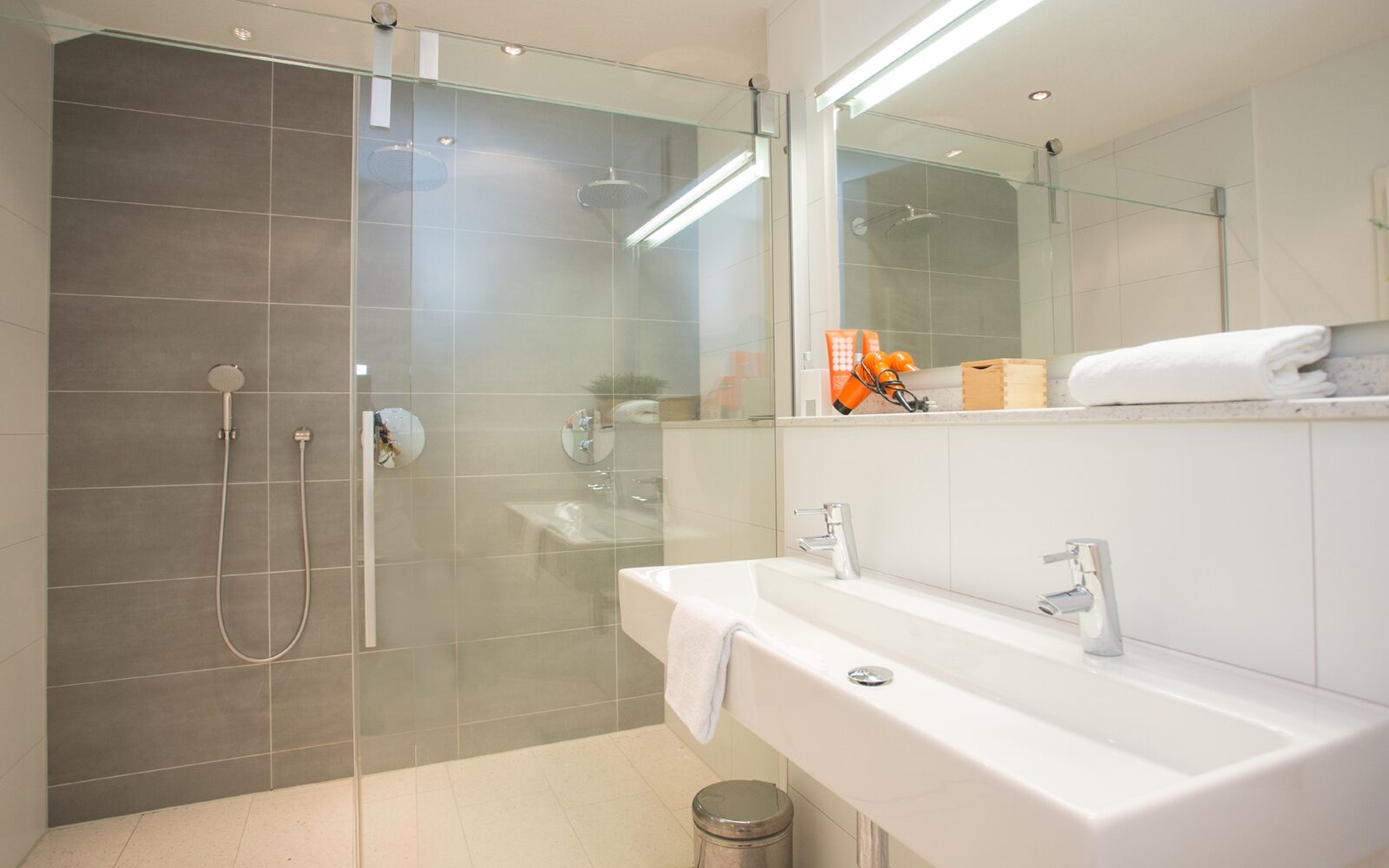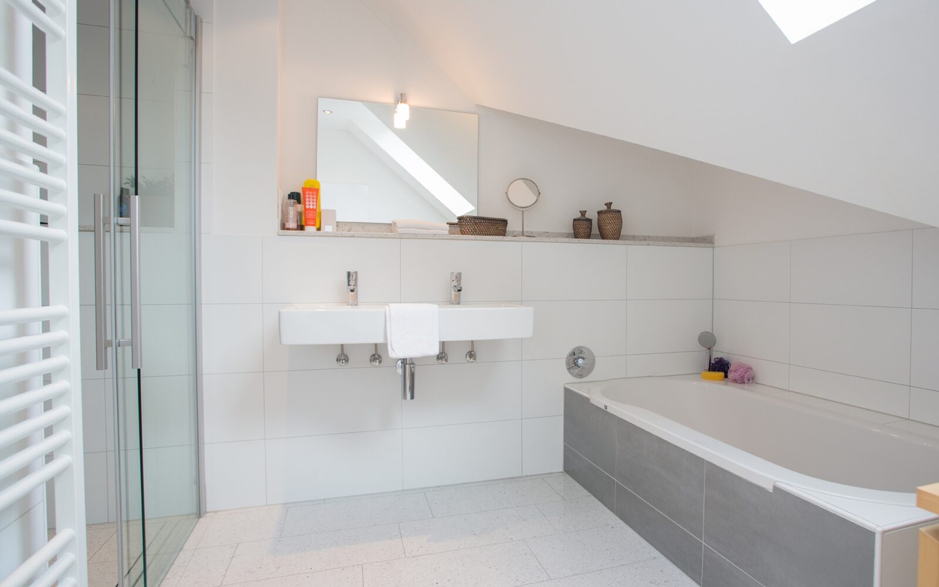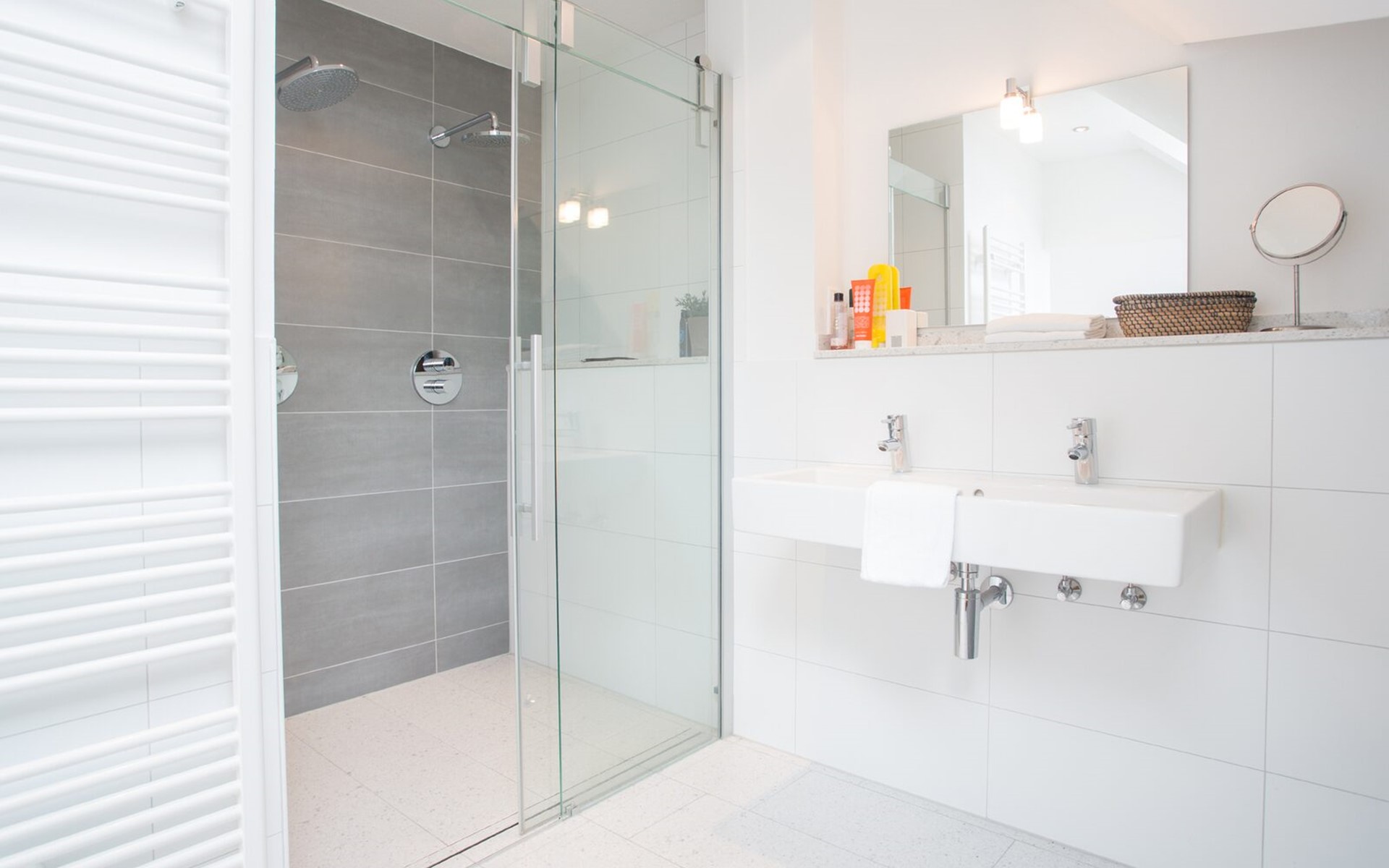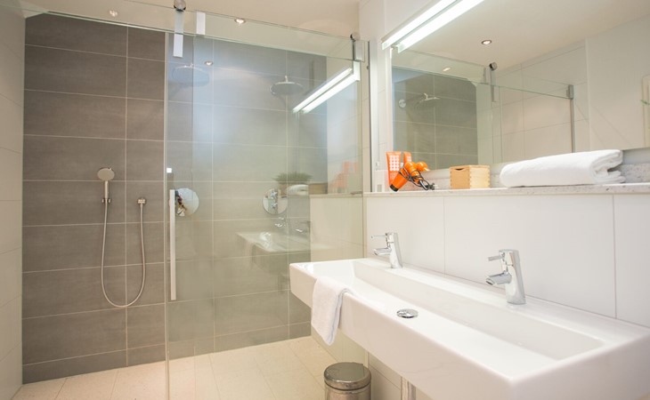De badkamers zijn ruim en proper alleen spijtig van de weinige opbergruimte.
