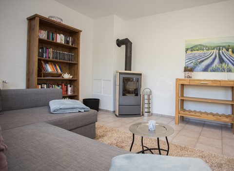 Das Haus verfügt über ein stilvoll eingerichtetes Wohnzimmer mit vielen Fenstern, hohen Decken, einer Empore. Die offene Küche hat eine gemütliche Essecke mit Eckbank und ist komplett ausgestattet mit Mikrowelle, Herd, Senseo-Kaffeemaschine, Wasserkocher, Kühlschrank mit Gefrierfach sowie einem Toaster.