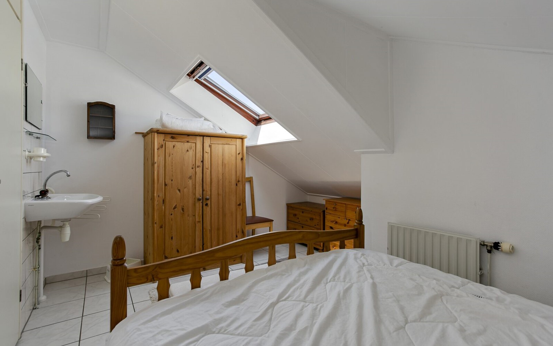 Im Obergeschoss befinden sich 2 Schlafzimmer mit Schränken: ein Zimmer mit Doppelbett 140 x 200 cm und ein Waschbecken, das Zweite mit ausziehbarem Schlafcouch 2 x 80 x 200 cm. Ein zweites Badezimmer mit Dusche, Waschbecken und Toilette sorgt für zusätzlichen Komfort.