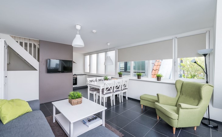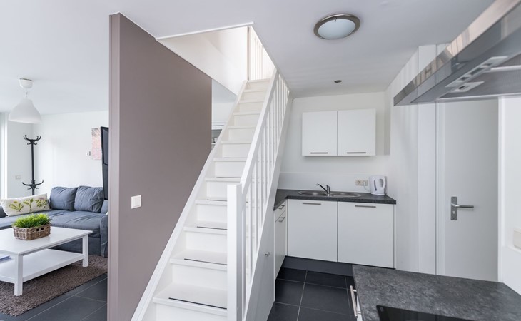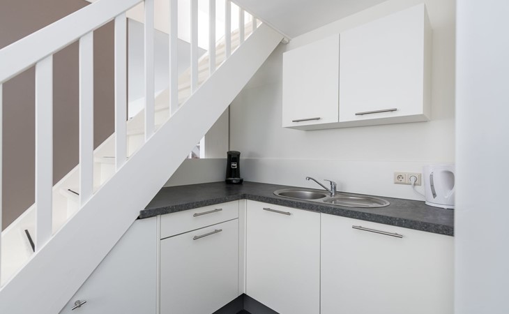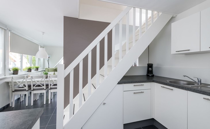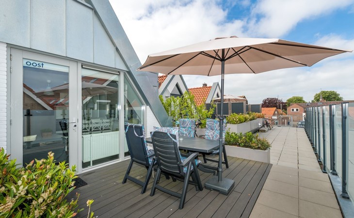Vor dem Aufgang zur Ferienwohnung hat es genügend freie kostenlose Parkplätze, um ihr Auto während des gesamten Ferienaufenthaltes stehen zu lassen. Eine Metalltreppe führt Sie auf einen Dachboden, welcher als Zugang zu 4 nebeneinanderliegenden Ferienwohnungen dient. Das dritte Appartement ist Wohnung Oost. 2 Stufen hoch, nach rechts drehen und Sie stehen auf ihrer für gemütliche Stunden ausgestatteten Dachterrasse und der Eingangstür.