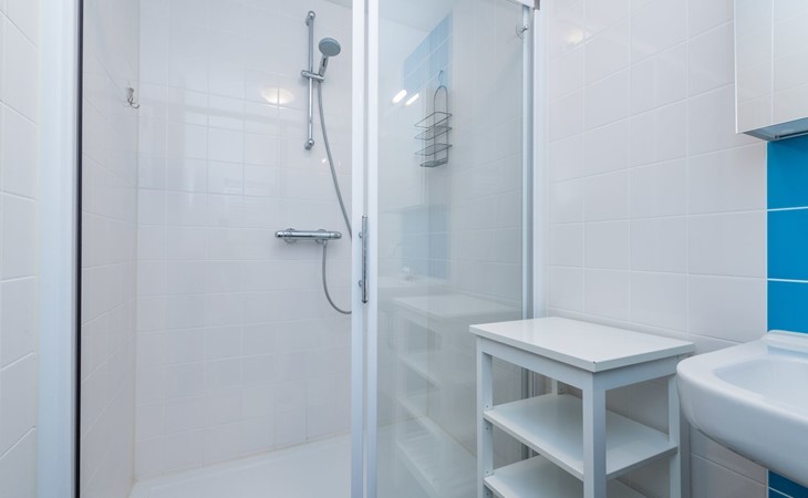 Durch diese betreten Sie direkt den hellen Wohn-/Essbereich mit einem Esstisch für 6 Personen und bequemer Sitzecke mit einem ausziehbarem Schlafsofa für 2 Personen (140 x 200 cm). Weiter geht es in die zweigeteilte komplett ausgestattete und eingerichtete offene Küche. Mitten durch die Küche erreichen Sie den Nassbereich. Hier befindet sich das Badezimmer mit Dusche und Waschbecken. Die Toilette ist separat mit einem kleinen Handwaschbecken. Im kleinen Abstellraum steht Ihnen eine Waschmaschine und ein Klappbett zur freien Benutzung.