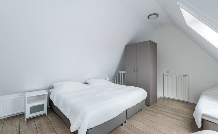 Über eine Treppe gelangen Sie in den Dachstock, ausgebaut zum großen Schlafraum mit 4 Box-Springbetten 90 x 200 cm. Dieser Bereich ist klimatisiert.