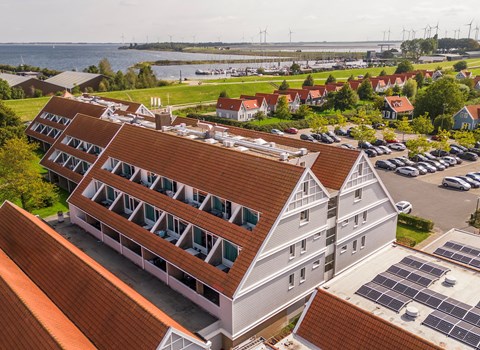 Vom Wohnbereich geht es auch an die gesunde Nordseeluft auf die leicht erhöhte östliche Terrasse mit einem einmaligen Ausblick auf den ganzen Hafen Port Zélande. Freuen Sie sich jetzt schon in den komfortablen Outdoor-Möbeln bei einem guten Glas Wein zu beobachten, wie die Yachten und Segelschiffe direkt an Ihnen vorbeigleiten.