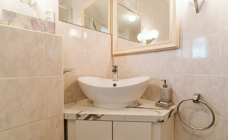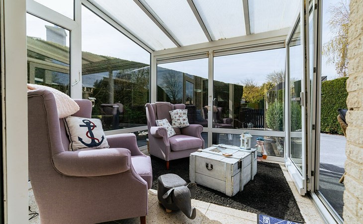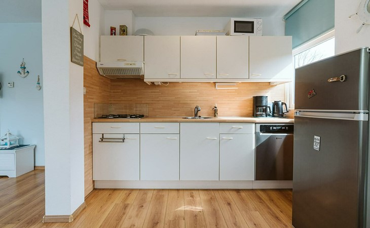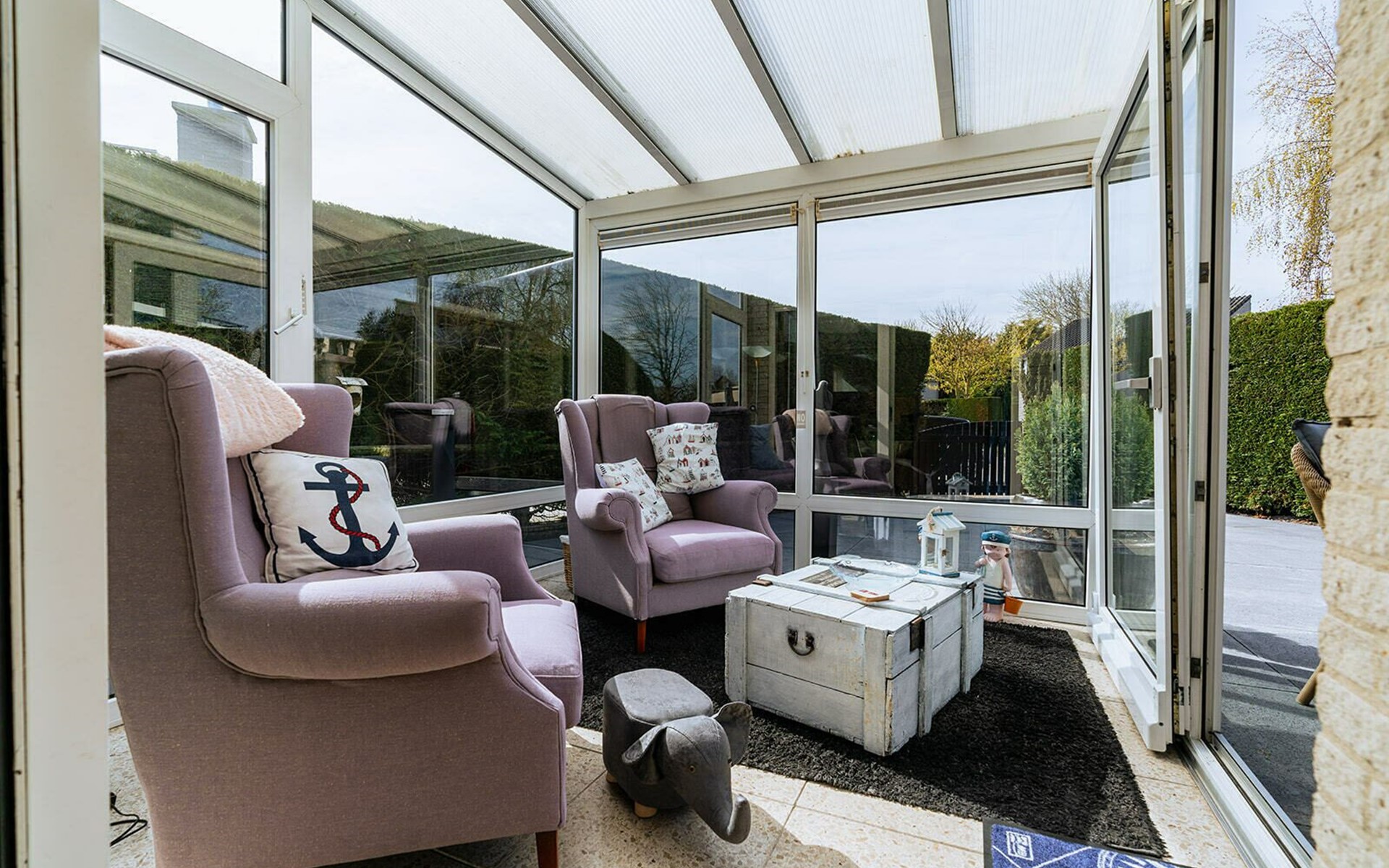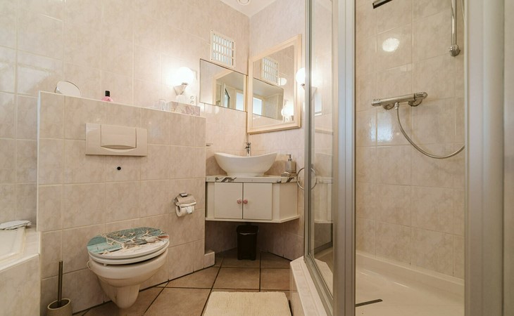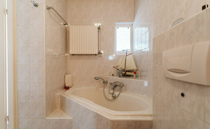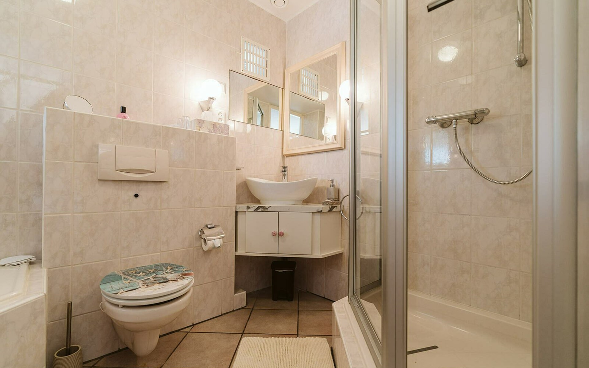Vom Flurbereich aus kommen Sie einmal in das großzügige mediterrane Badezimmer mit Badewanne, Dusche, Waschbecken und Toilette. Eine andere Tür führt ins Hauptschlafzimmer, wo Sie die Nacht in einem Doppel-Box-Springbett 160 x 200 cm verbringen. Durch die letzte Tür gelangen Sie in den geräumigen Wohn-/Essbereich. Eine gemütliche Ledersitzgruppe lädt zum Entspannen ein. Der Kamin, welchen Sie mit Holz beheizen können, garantiert an kühlen Tagen zusätzliche Romantik. In der offenen Küche, mit allem ausgestattet, können sie zu jeder Zeit leckere Mahlzeiten zubereiten und sie am Esstisch gemeinsam genießen. In dem angrenzenden Wintergarten befinden sich zwei kuschelige Lesesessel zum Chillen.