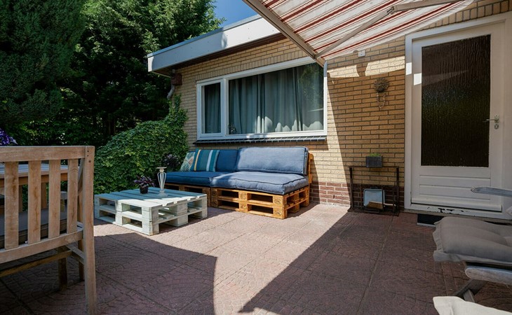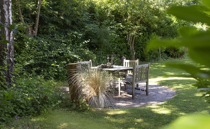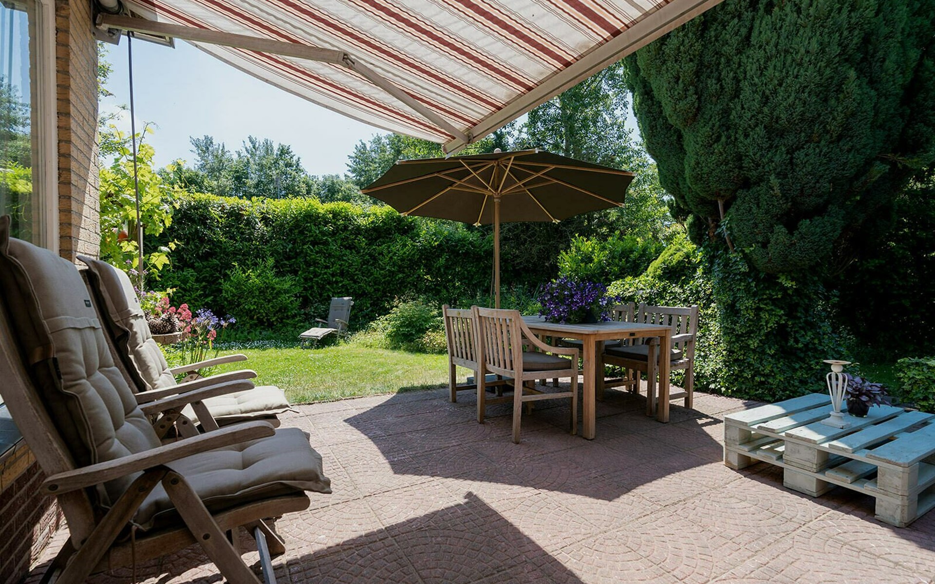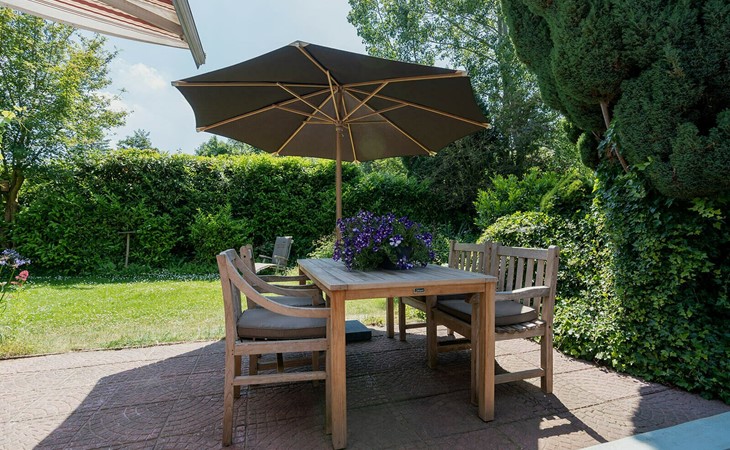 Am Ende des Flurs geht es auch raus in den naturnahen großen Gartenbereich. Auf der im Südwesten angesiedelten Terrasse können Sie sich unter der Markise oder dem Sonnenschirm erholen und z.B. sich wieder mal einer spannenden Lektüre widmen. Im durch eine grüne Hecke eingezäunten Garten finden Sie immer ein verträumtes Idyll in der Sonne oder im Schatten, um ganz einfach die pure Natur zu erleben.