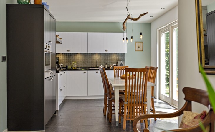 Sie werden das Haus gleich über die Wohnküche betreten. Die L-förmige Küche ist mit allen Geräten ausgestattet, um ein leckeres Mahl selbst zuzubereiten, das Sie dann gemeinsam am rustikalen Esstisch genießen können. Im angrenzenden großen hellen und heimelig eingerichteten Wohnzimmer findet jeder sein kuscheliges Plätzchen, um es sich so richtig gemütlich zu machen. Der Kamin darf leider nicht benutzt werden.
