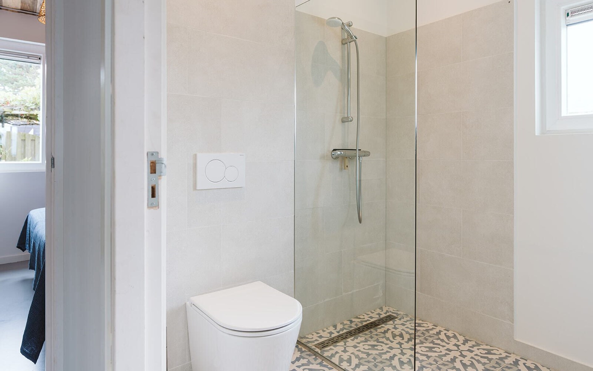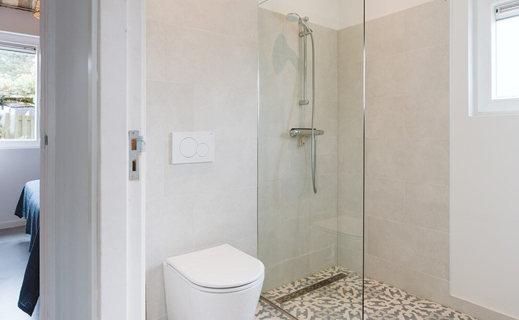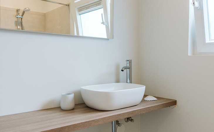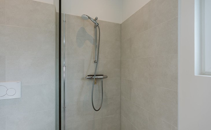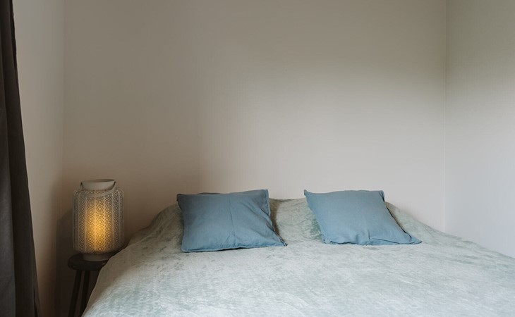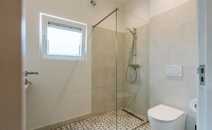 Geschlafen wie auf Wolke sieben wird in je zwei Schlafräumen links und rechts vom Wohnzimmer, alle ausgestattet mit Box-Spring-Betten (2 Doppelbetten 180 x 200 cm, 1 Doppelbett 160 x 200 cm, sowie zwei Einzelbetten 90 x 200 cm). Wiederum zwischen den jeweiligen zwei Zimmern befindet sich je ein gepflegtes Badezimmer mit ebenerdiger Dusche, Aufsatzwaschbecken und Toilette. Das gesamte Haus verfügt über eine Fußbodenheizung, wird mit einer Wärmepumpe nachhaltig beheizt und ist somit für Sommer und Winter bestens geeignet.