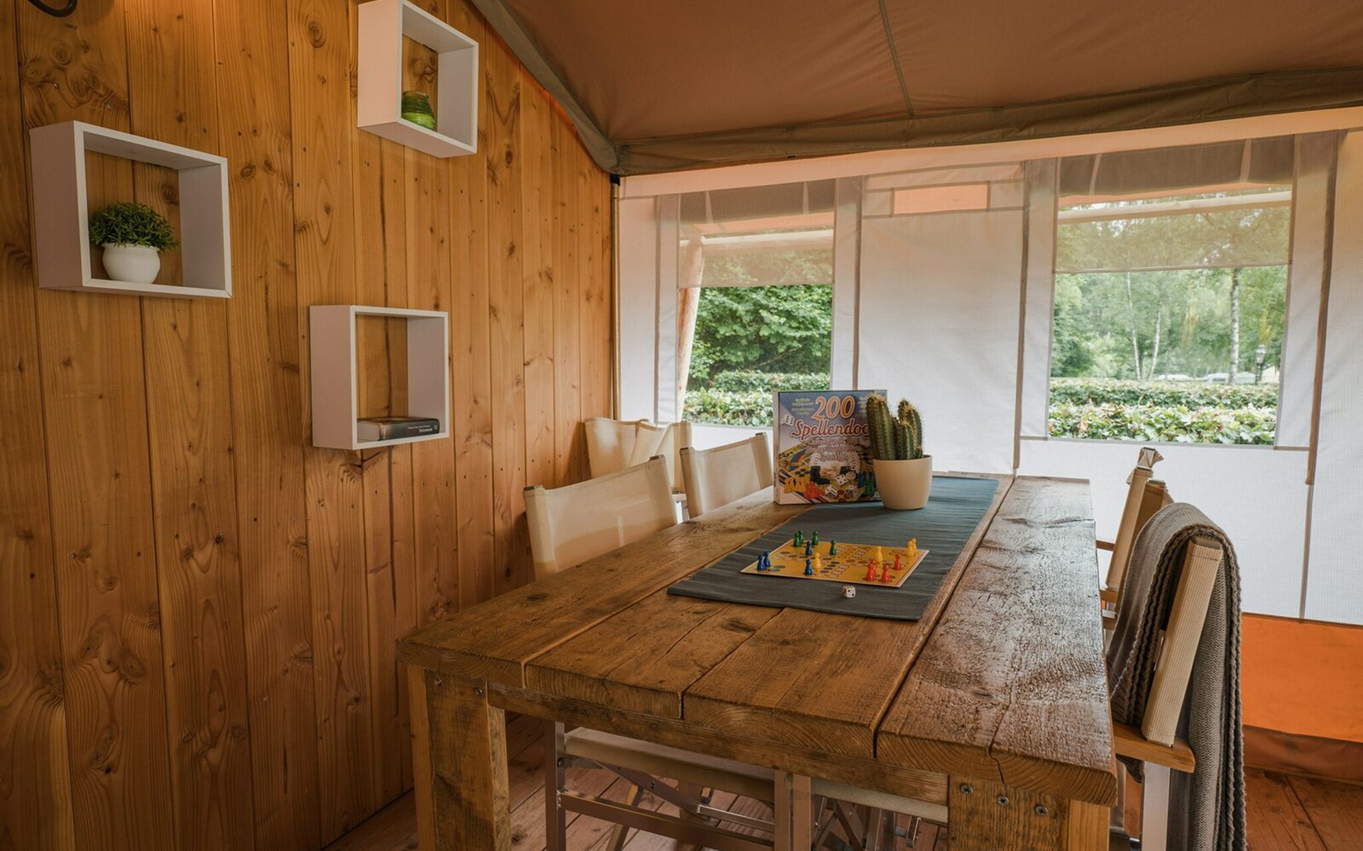 Das Zelt der Lodge liegt zentral zum Ferienpark. Alle Einrichtungen befinden sich in der Nähe.