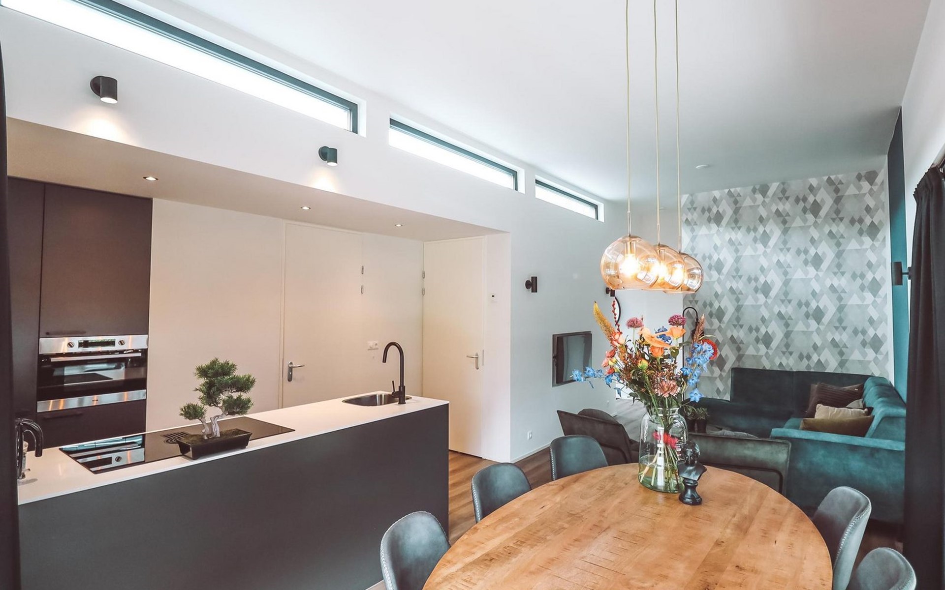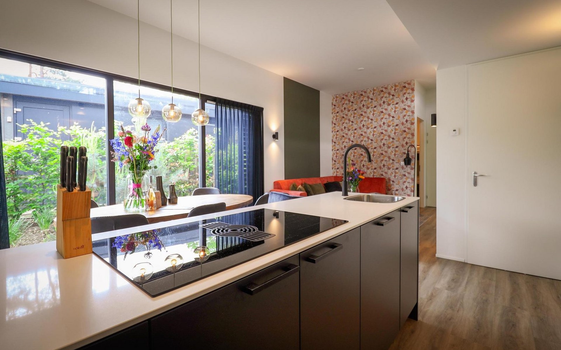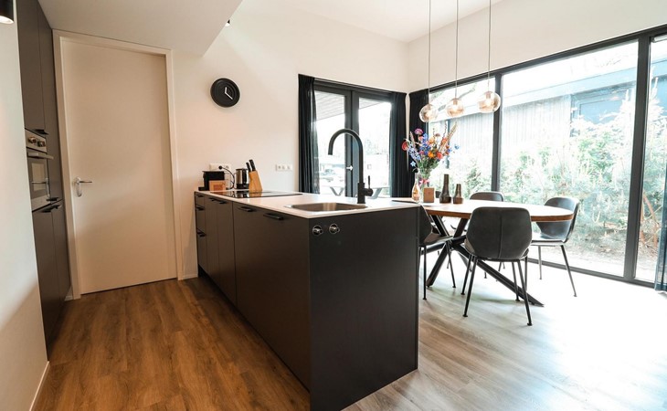 Diese Öko-Lodge eignet sich hervorragend für einen Wochenendausflug oder Urlaub mit höchstem Komfort. Die Lodge ist mit drei Schlafzimmern ausgestattet, darunter ein Elternschlafzimmer mit einem Doppelbett und einem Waschbecken, ein Doppelzimmer mit einem Doppelbett und ein Schlafzimmer mit einem Etagenbett. Die Lodge verfügt über ein geräumiges Badezimmer mit Toilette und eine separate Toilette. Der geräumige Wohnbereich verfügt über eine moderne offene Küche mit einem schönen Blick nach draußen. Die Küche ist mit den folgenden Geräten ausgestattet: Nespresso-Kaffeemaschine, Wasserkocher, Kombi-Backofen, Kühl-/Gefrierfach, Induktionsherd, Dunstabzugshaube in der Kochinsel mit diversem Kochgeschirr und einem Pfannenset.