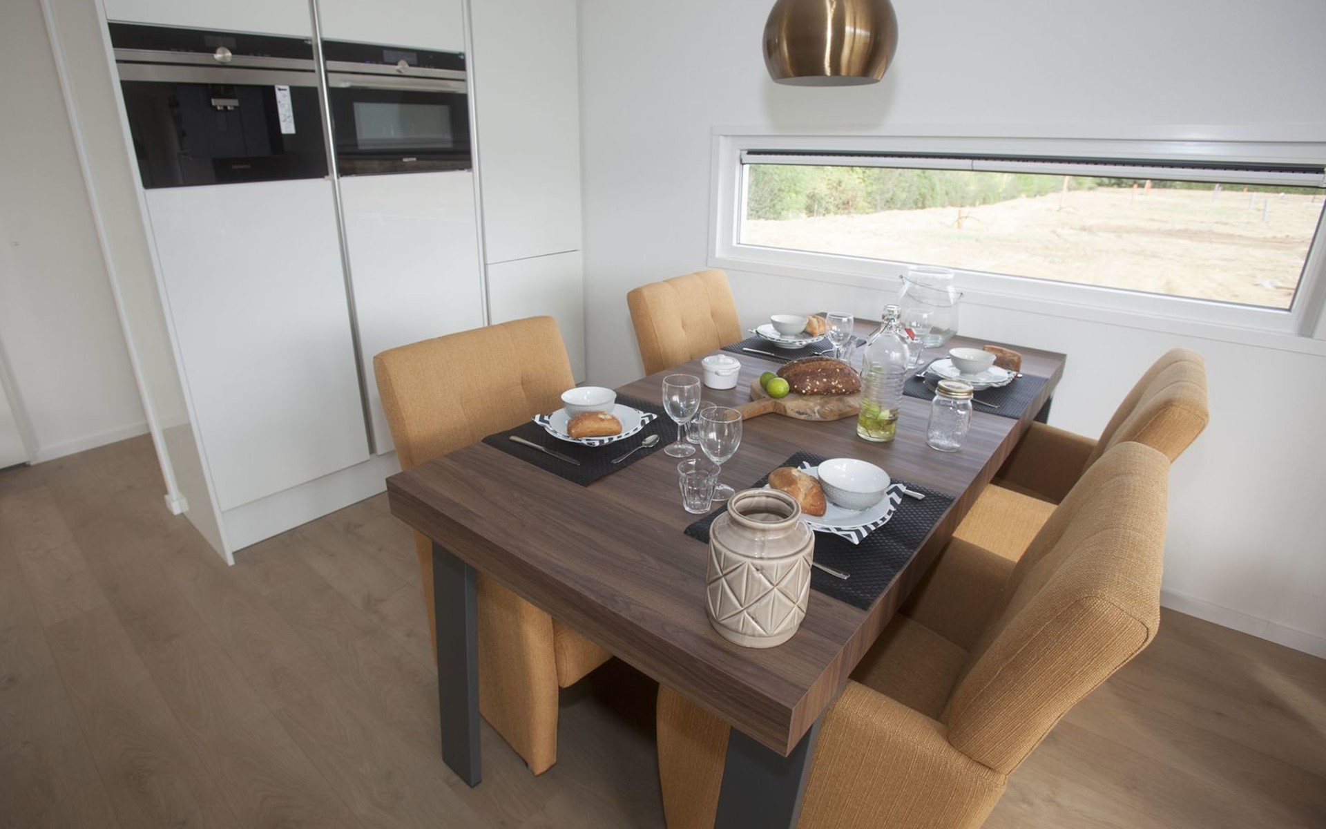 Het huisje met een hele grote woonkamer met vrij uitzicht en mooi ingericht. Veel kastruimte in alle kamers. Een ruime tuin.