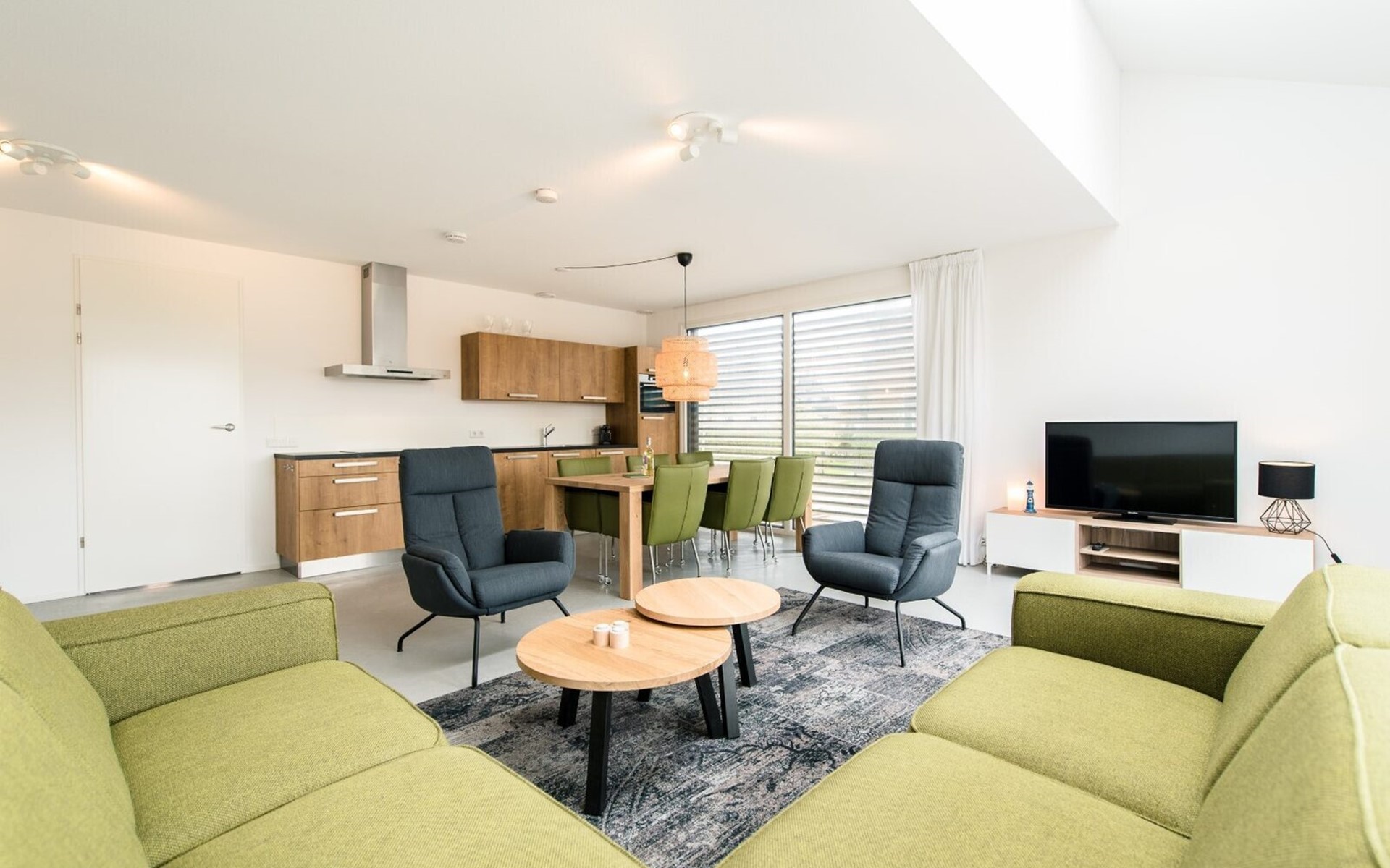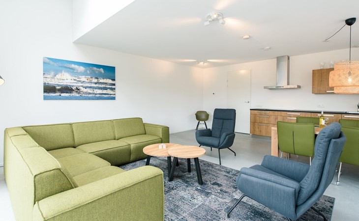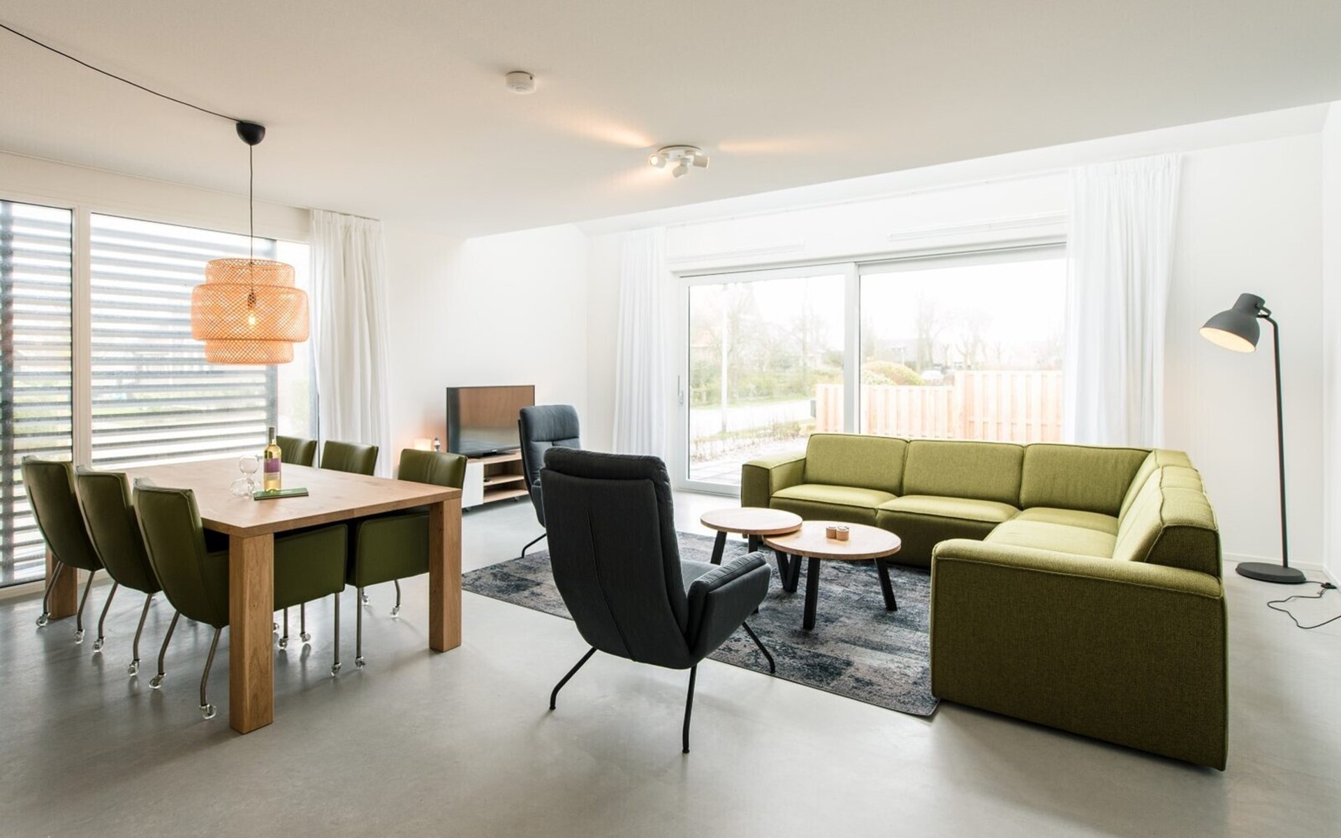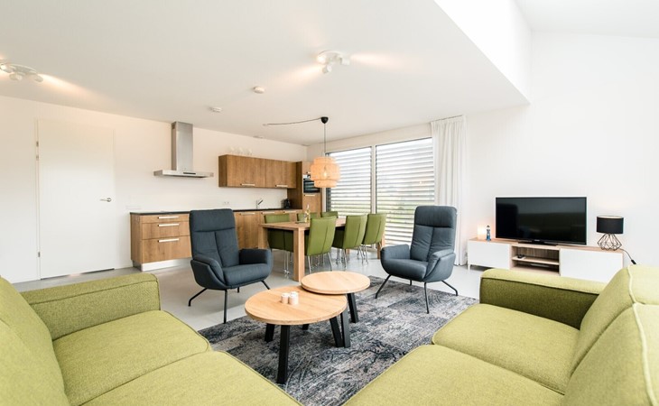 De Plevier (1) ist ein Luxushaus mit allen Annehmlichkeiten. Es verfügt über ein geräumiges Wohnzimmer mit offener Küche, die unter anderem mit Geschirrspüler, Induktionskochfeld, Nespresso und Wasserkocher ausgestattet ist.
