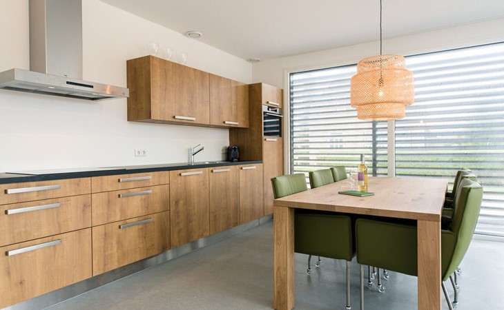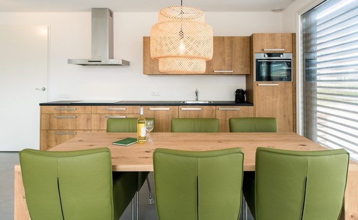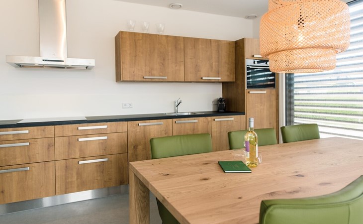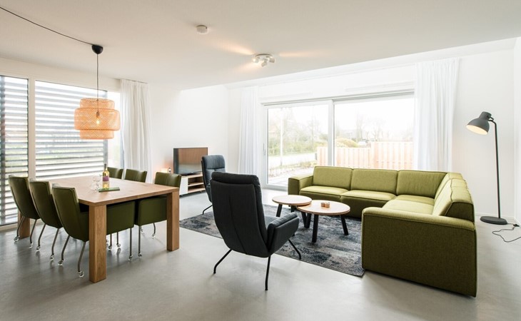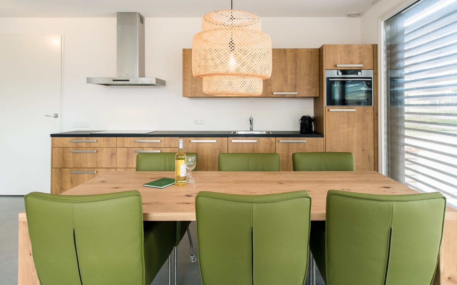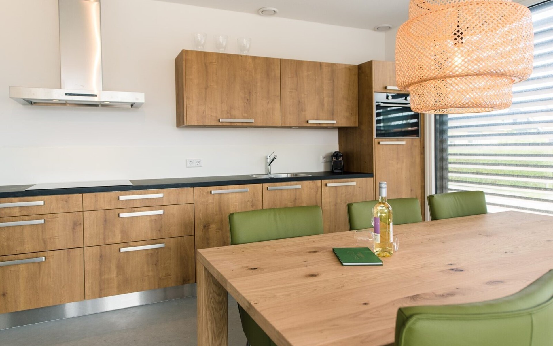 De Plevier (1) ist ein Luxushaus mit allen Annehmlichkeiten. Es verfügt über ein geräumiges Wohnzimmer mit offener Küche, die unter anderem mit Geschirrspüler, Induktionskochfeld, Nespresso und Wasserkocher ausgestattet ist.