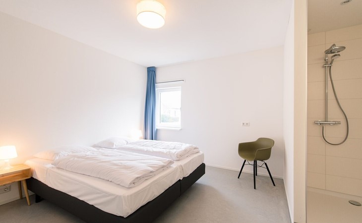 - 1x Schlafzimmer im Erdgeschoss mit eigener Dusche und Waschbecken.