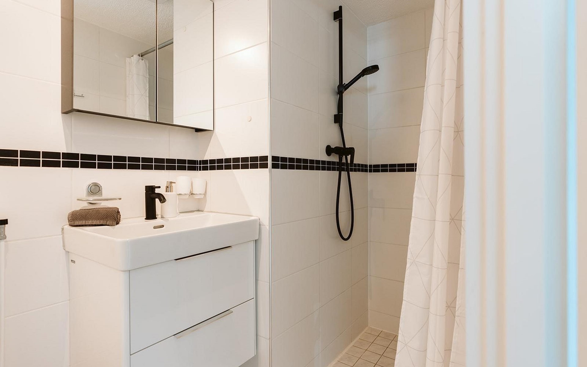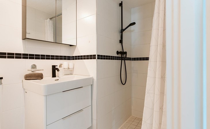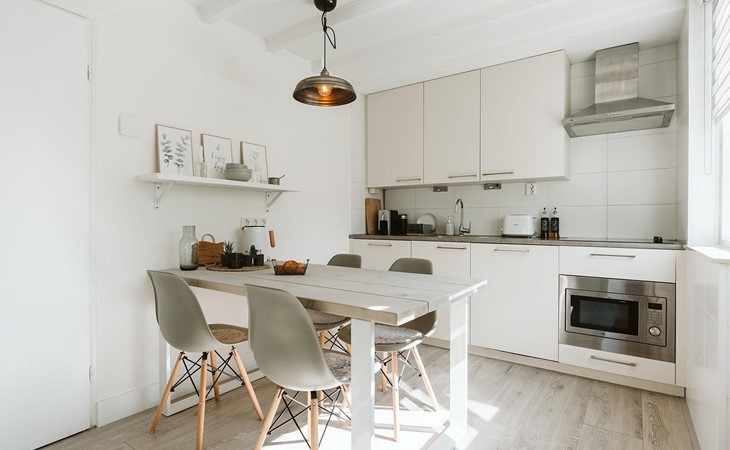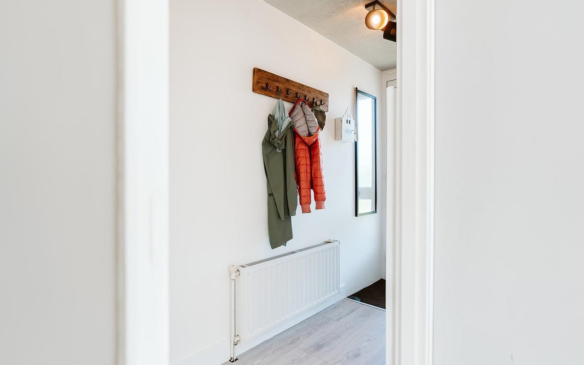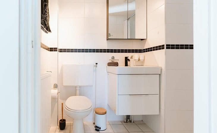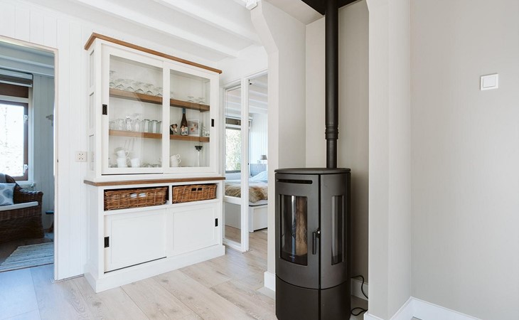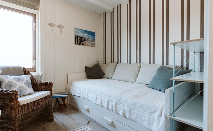 Sie betreten den Bungalow auf der Südseite durch einen kleinen Flur. Hier befindet sich das Badezimmer mit Waschbecken, Toilette und ebenerdiger Dusche. Eine zweite Tür führt Sie direkt ins Wohnzimmer, wo das Sofa mit seinen kuschligen Kissen und hyggeligen Decken bereits auf Sie wartet. Aber auch in der angrenzenden hellen Sitz- und Leseecke mit weichen Fellen fühlt man sich sofort heimelig. Ergänzt wird dieser Gesamtraum mit der komplett ausgestatteten offenen Küche und passendem Esstisch.