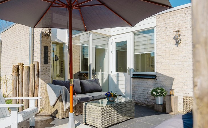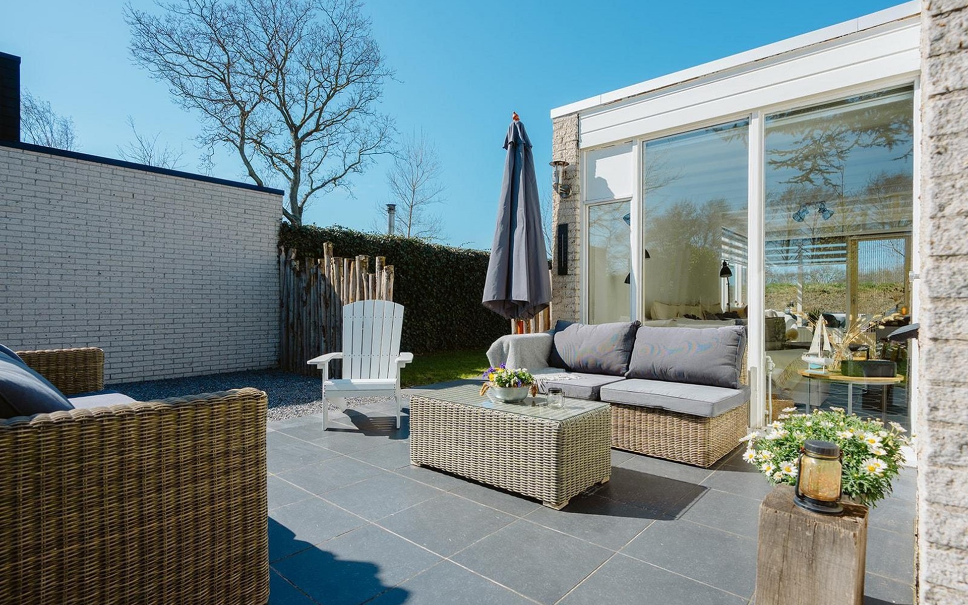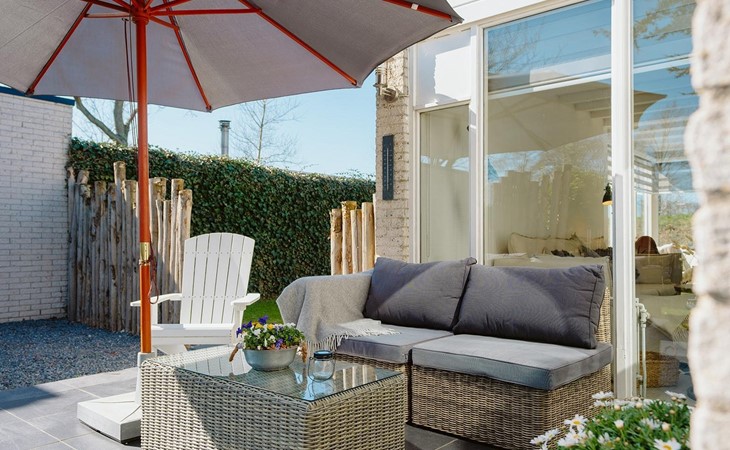 Vom Küchenbereich geht es raus auf den Südwestlichen Sitzplatz mit einer kuscheligen Rattan-Lounge und Sonnenschirm. Den zweiten Sitzplatz, mit Tisch und Sonnenschirm, sowie den grün eingezäunten Gartenbereich mit viel Privatsphäre, entdecken Sie auf der Nordwest Seite durch eine Tür bei der Leseecke. Hier finden Sie in einer Liege auch den perfekten Platz, um einfach an der gesunden Nordseeluft den inspirierenden Klängen der Natur zu horchen.