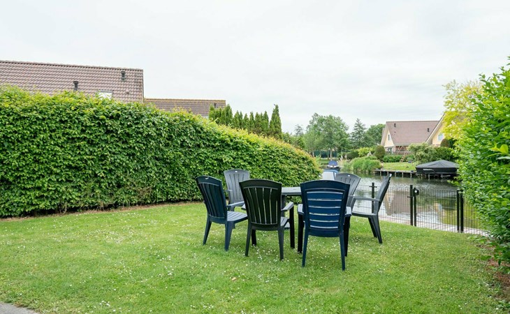 Alle Bungalows haben einen Garten in ruhiger Lage am Wasser und einen privaten Anlegesteg. Einige Bungalows haben ein wasserseitiges Tor.