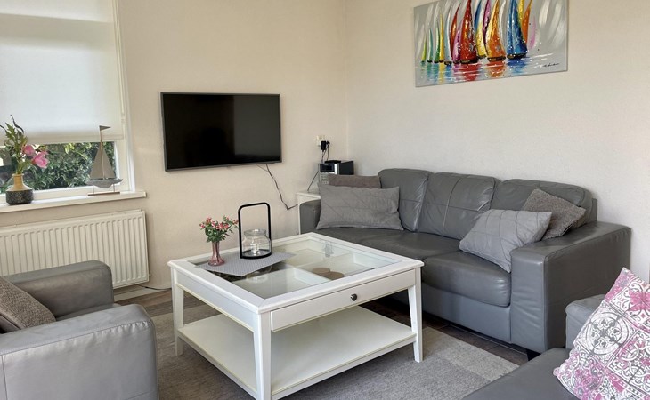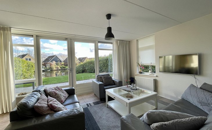 Die Komfortbungalows haben eine Fläche von ±110 m² und verfügen über einen Eingangsbereich mit einer Treppe in den ersten Stock, eine Gästetoilette und einen separaten Abstellraum. Es gibt ein geräumiges, zum Wasser hin ausgerichtetes Wohnzimmer mit Fernseher und Glastüren zur Terrasse.