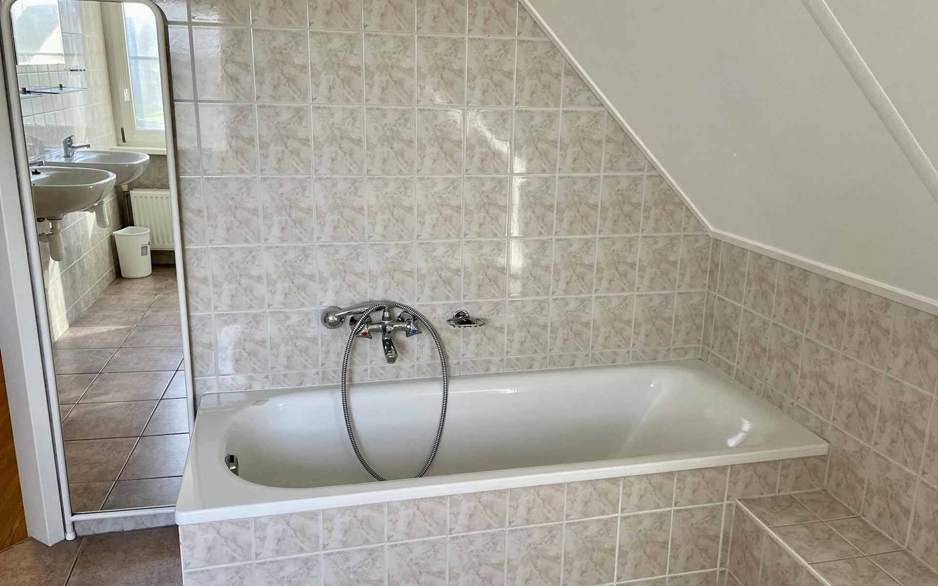 Im Obergeschoss finden Sie drei Schlafzimmer mit jeweils zwei Einzelbetten und ein Badezimmer mit Dusche, (einige mit Badewanne) und Toilette. Alle Betten sind Boxspringbetten.