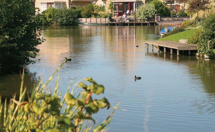 Alle Bungalows haben einen Garten in ruhiger Lage am Wasser und einen privaten Anlegesteg. Einige Bungalows haben ein wasserseitiges Tor.