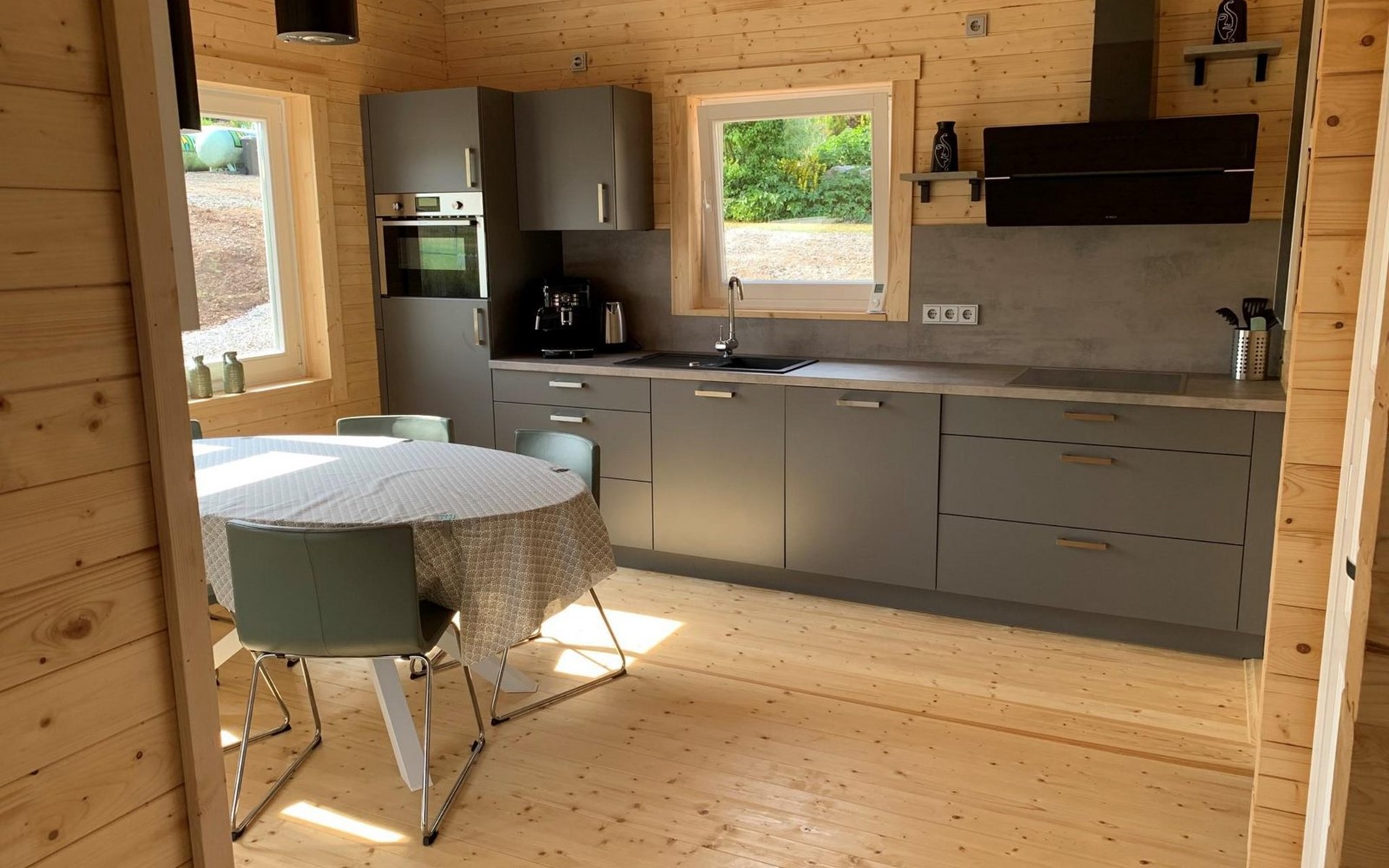 Dieses brandneue Blockhaus von ca. 85 m2 ist in frischen Farben mit modernen Möbeln eingerichtet. Das Wohnzimmer hat einen neuen Smart-TV, auf dem Sie Netflix sehen können. Die separate Esszimmer/Küche ist mit modernsten Geräten ausgestattet, darunter ein Geschirrspüler, ein Kombi-Backofen und eine Espressomaschine. Es gibt 2 geräumige Schlafzimmer. Ein Schlafzimmer hat ein Doppelbett, das andere Schlafzimmer hat drei Einzelbetten. Das moderne Badezimmer hat eine Walk-in-Dusche, Waschbecken und Toilette. Es gibt auch eine separate Gästetoilette. Es gibt eine Waschmaschine und einen Wäschetrockner. Vom Wohnzimmer aus gelangen Sie direkt auf die überdachte Terrasse, wo Sie im Sommer in der Morgensonne frühstücken und abends auf dem Gasgrill grillen können. Hier können Sie die schöne Aussicht und die Berge des Sauerlandes genießen. Alles ist ebenerdig und für Senioren geeignet. Zum Aufladen Ihres Autos gibt es eine Elektroladestation. Für die Kleinsten stehen Schlitten zur Verfügung. Ein Haustier ist willkommen.