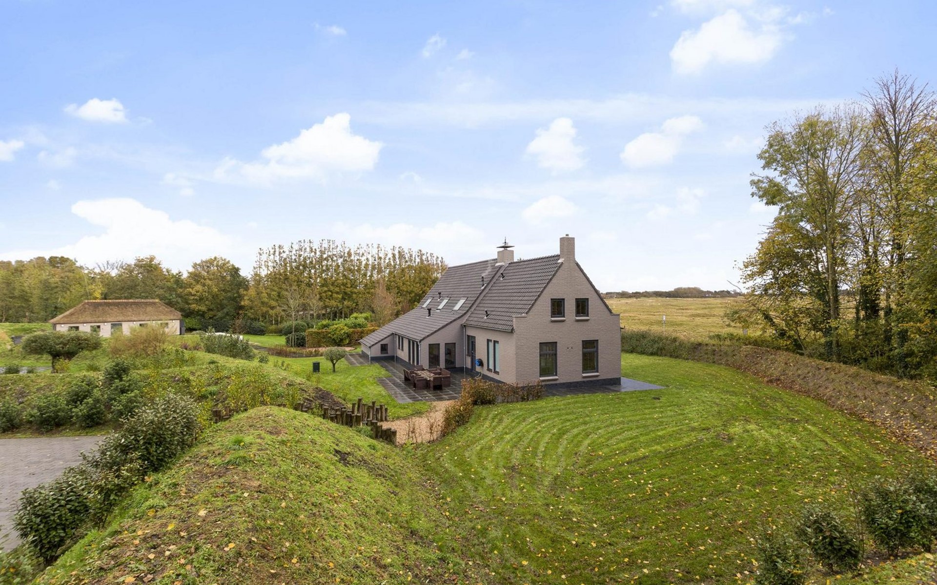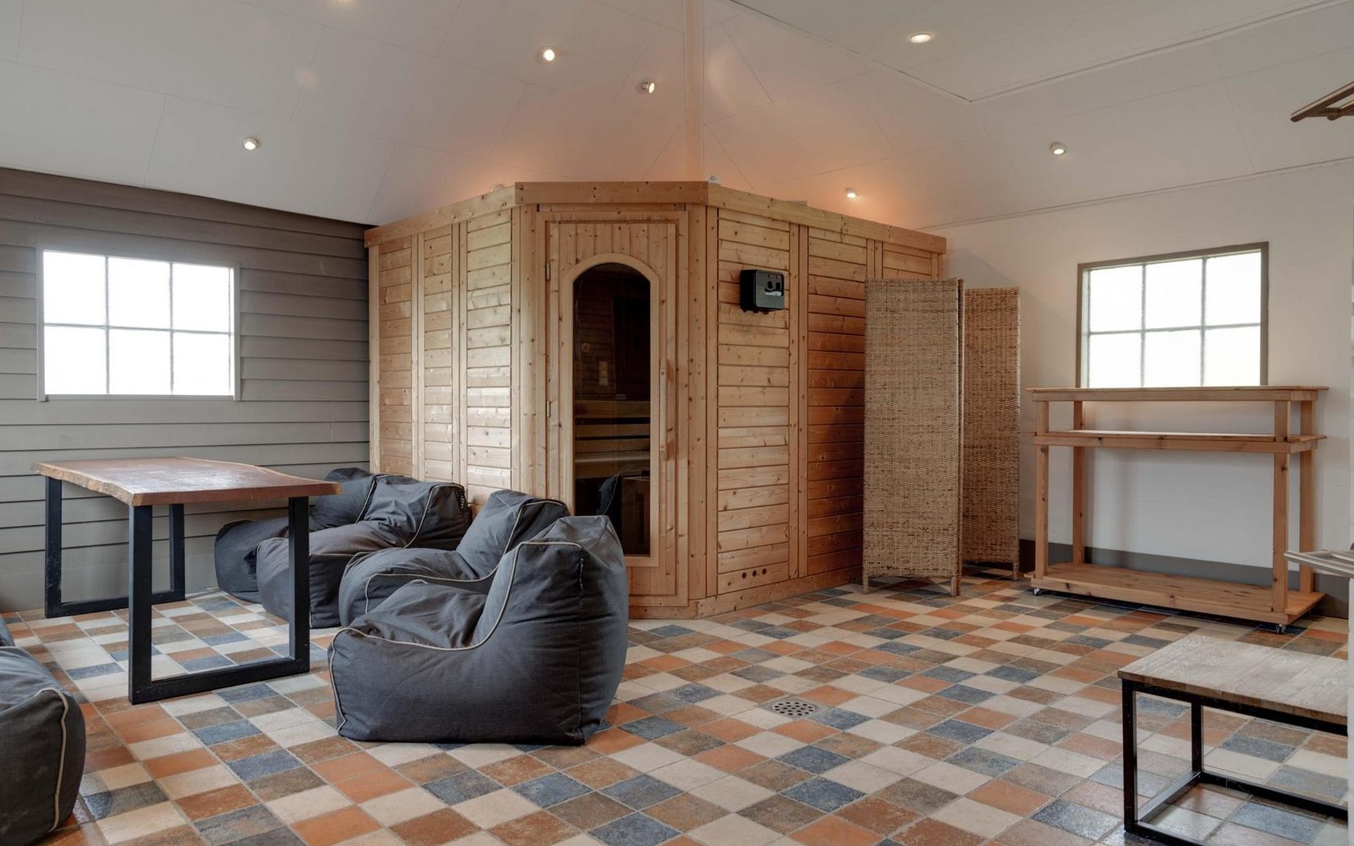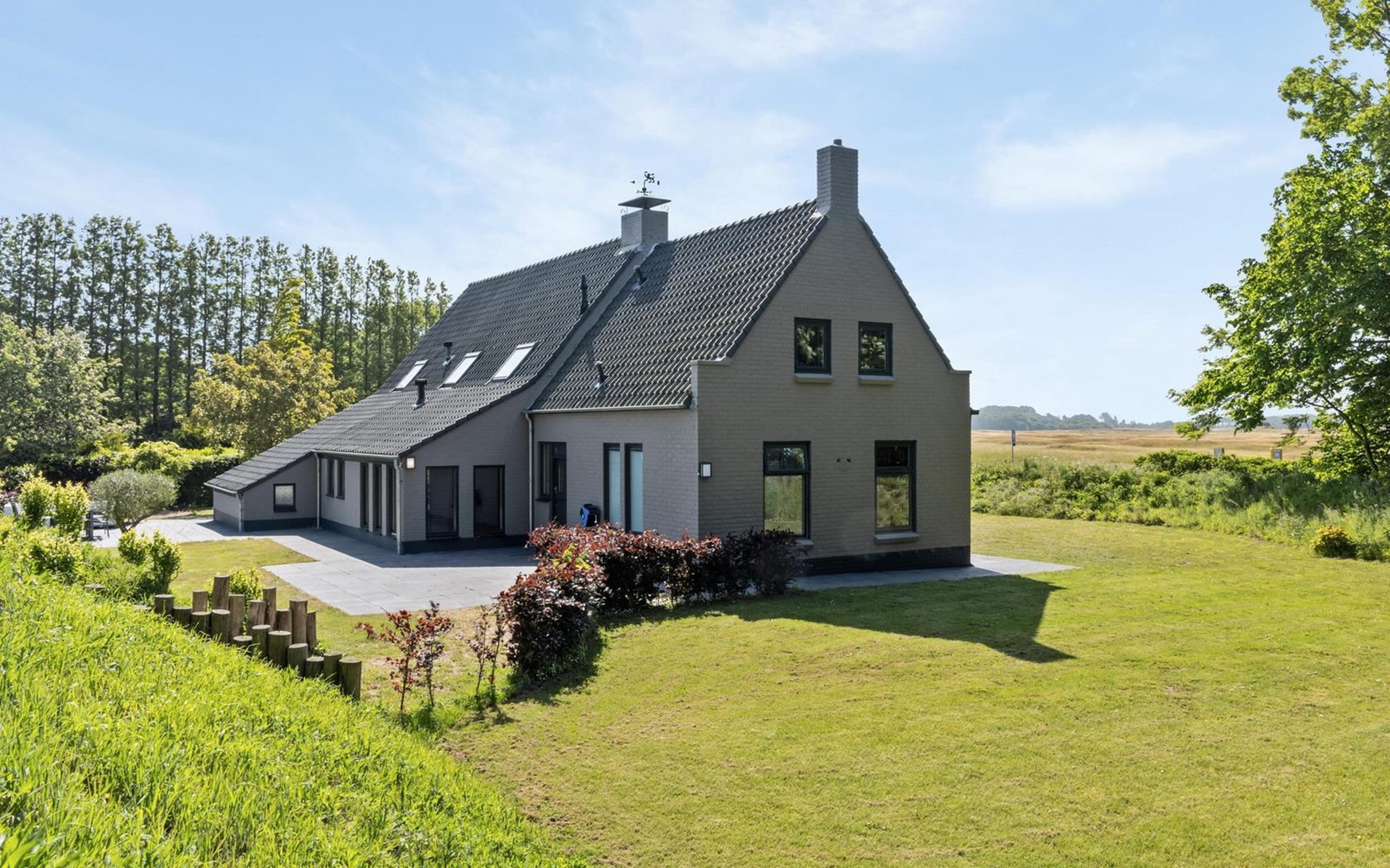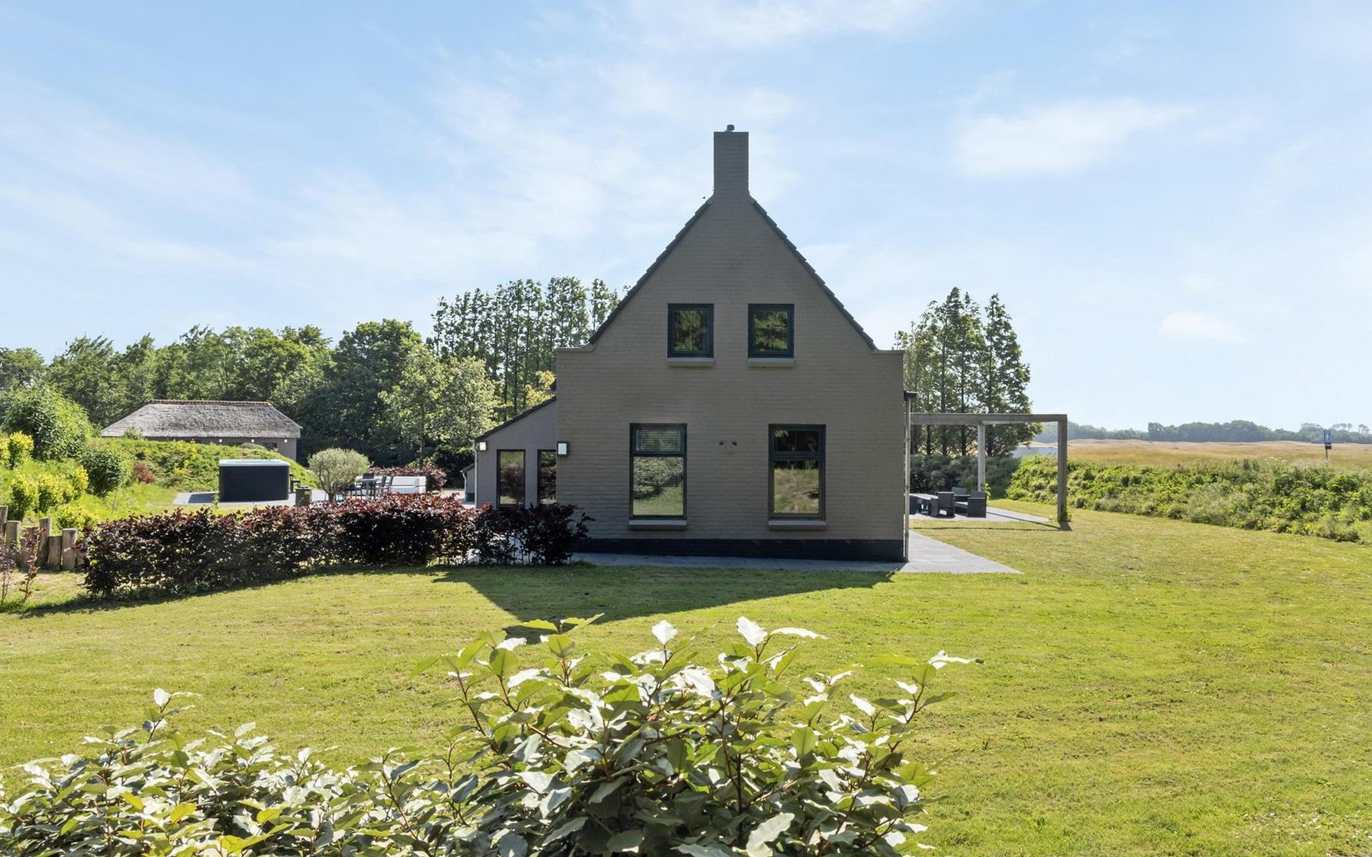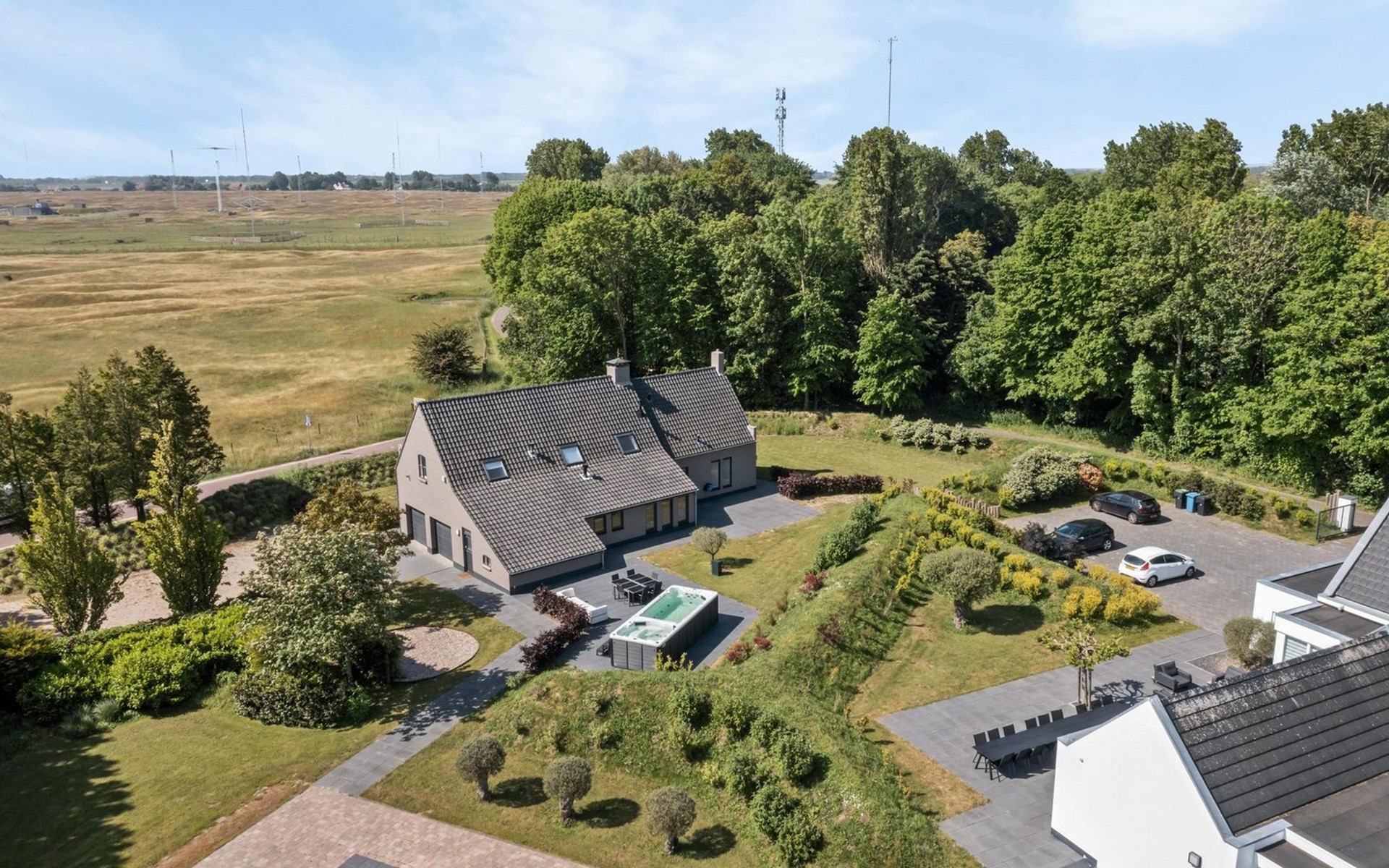 Das Haus steht zusammen mit einer weiteren Villa für 10 Personen auf einem ca. 1 Hektar großen Naturgrundstück, nur ca. 1000 Meter von einem der schönsten Strände der Niederlande entfernt. Die Gartenanlagen sind getrennt, aber von beiden Häusern zugänglich. Zur Gesamtanlage gehört auch noch ein Sauna-Haus mit Sauna, zwei Duschen, Ruhezone und Toilette. Eine Saunasitzung trägt maßgeblich zur Entspannung von Körper und Geist bei und ist ein idealer Ort zum Abschalten. Da das Sauna-Haus beiden Ferien-Villen zur Verfügung steht, braucht es jeweils eine Voranmeldung zur Nutzung. Sie haben auch die Möglichkeit beide Villen gemeinsam zu buchen.