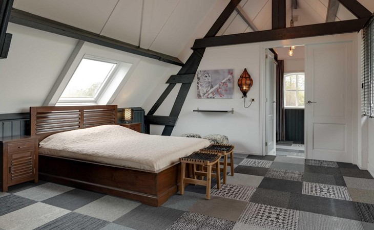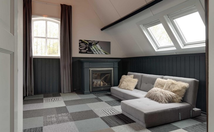 Die wohlverdiente Nachtruhe finden dann noch weitere 8 Personen im Obergeschoss. Von der Treppe nach rechts betreten Sie ein sehr grosses Durchgangs-Schlafzimmer mit einem Doppelbett 160 x 200 cm, Fernseher und kleinem Balkon auf der Nordseite. 2 Stufen runter und es folgt ein weiteres Schlafzimmer mit einem Doppel-Box-Springbett 180 x 200 cm, einem Sofa und daneben ein behaglicher Gas Kamin, sowie einem eigenen Badezimmer mit Dusche, Toilette und Waschbecken. Auf der linken Seite finden Sie 2 Schlafräume mit je einem Doppel-Box-Springbett 160 x 200 cm plus ein Badezimmer mit Dusche, Toilette und Waschbecken. Das ganze Obergeschoss ist mit Teppichboden ausgelegt.