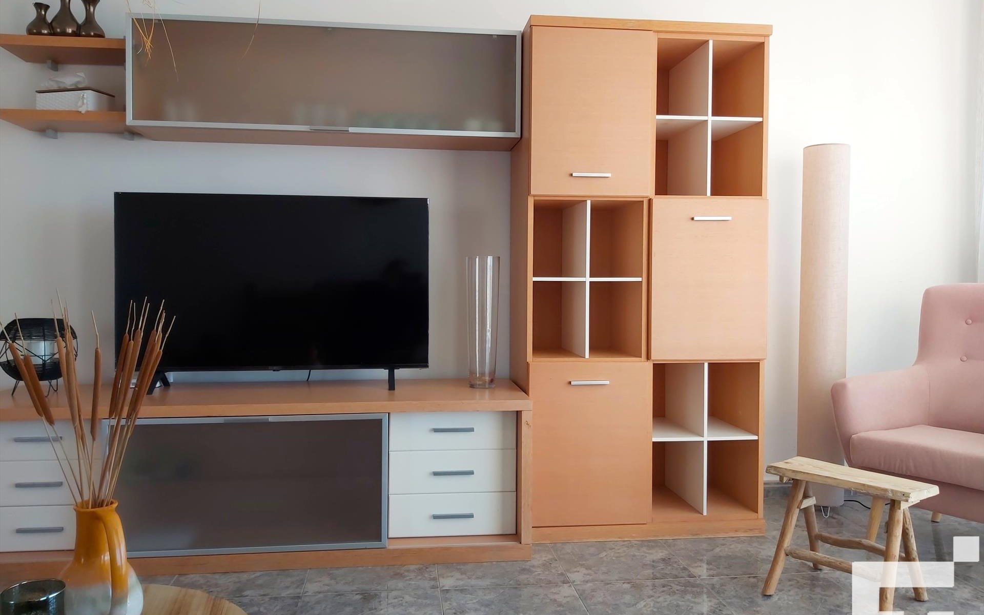 · Grosses Wohn / Esszimmer mit Fernseher und Ausgang zur Terrasse.