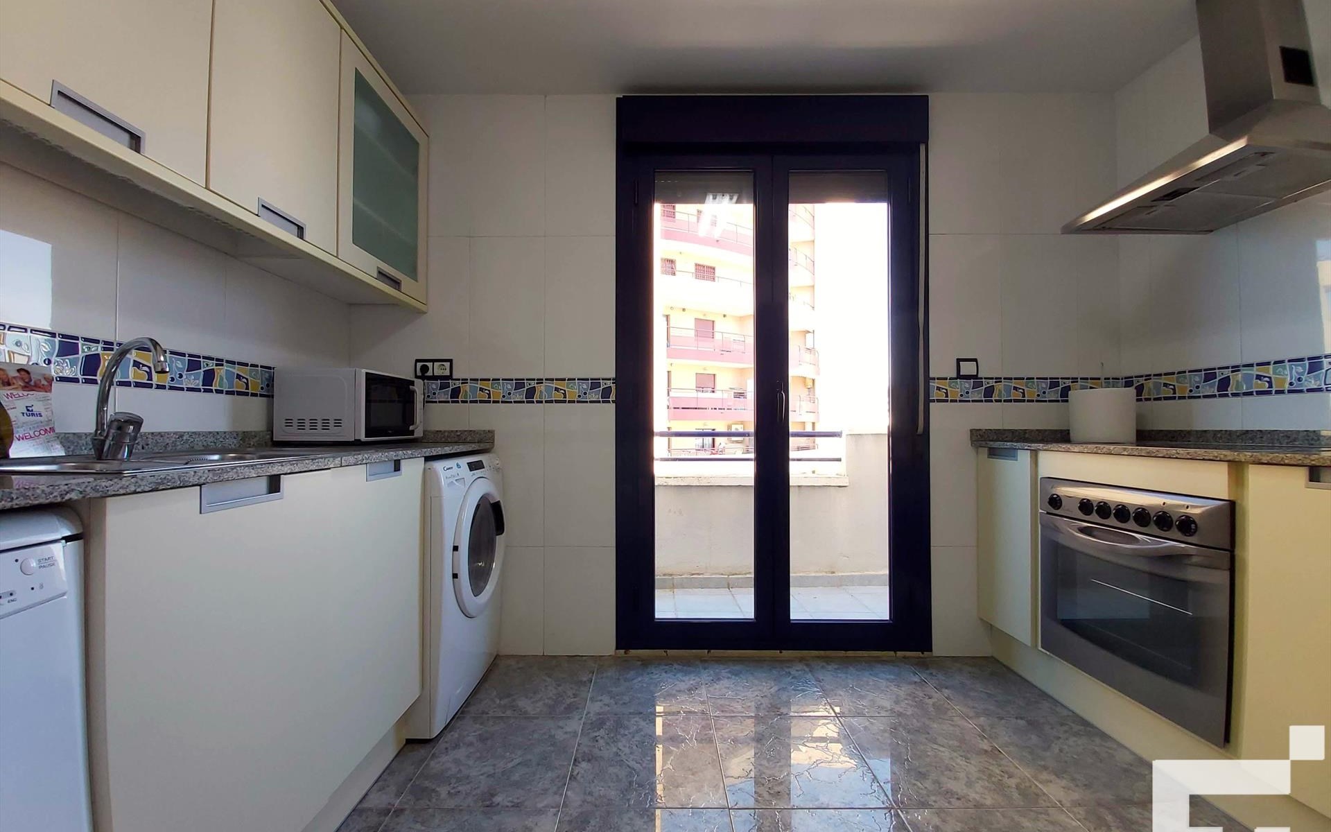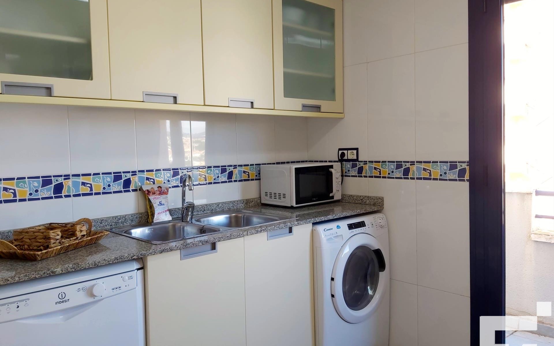 · Ausgestattete Küche mit Wasch- und Geschirrspülmaschine und Cerankochfeld.
