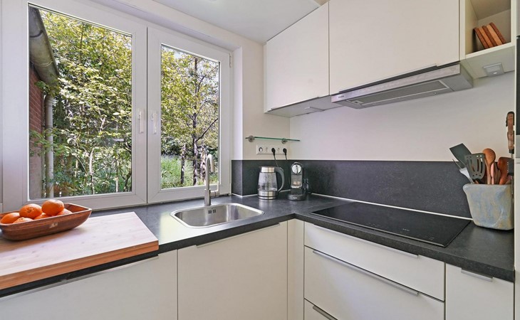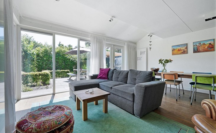 Viel Privatsphäre bietet der grüne Garten mit mehreren sonnigen oder schattigen Bereichen, um die pure Natur zu genießen und sich zu erholen. So können Sie es sich gemütlich machen in der Sitzecke mit Grill unter der gedeckten Veranda oder am Picknick-Tisch mit Sonnenschirm. Die sportliche Fitness können dann alle bei einem Tischtennis Rundlauf beweisen.