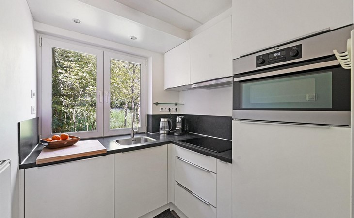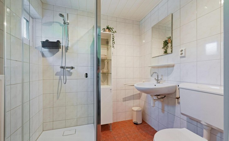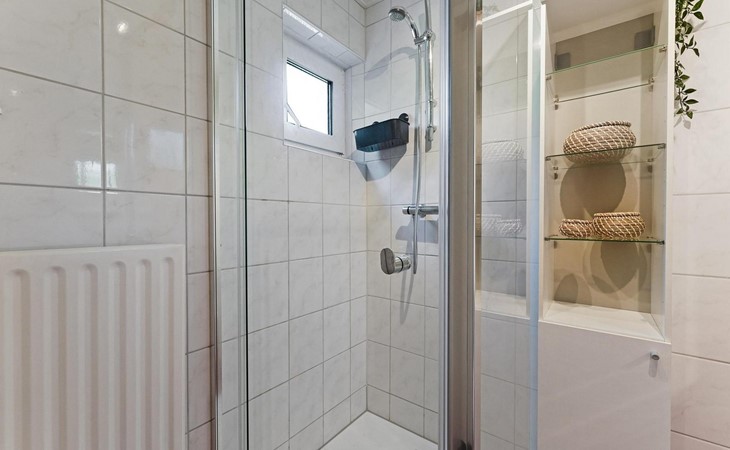 Vom Flur führt die eine Tür direkt ins Badezimmer, ausgestattet mit Dusche, Toilette und Waschbecken. Eine Tür weiter und Sie stehen im Wohn-/Essbereich. Am großen Esstisch finden alle Platz, um gemeinsam zu essen oder zum Spielen mit den Kindern. Das Wohnbereich, mit der tollen Sitzgruppe und dem Kamin, strahlt eine behagliche Atmosphäre aus. Die angrenzend separate kleine Küche ist eingerichtet mit allen Utensilien, um ein köstliches Mahl zuzubereiten. Schlafen wie Murmeltiere können 2 Personen im vom Essbereich erreichbaren Zimmer, ausgestattet mit einem Doppel-Box-Spring-Bett 160 x 200 cm.