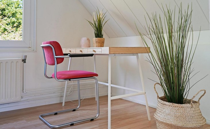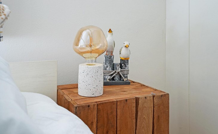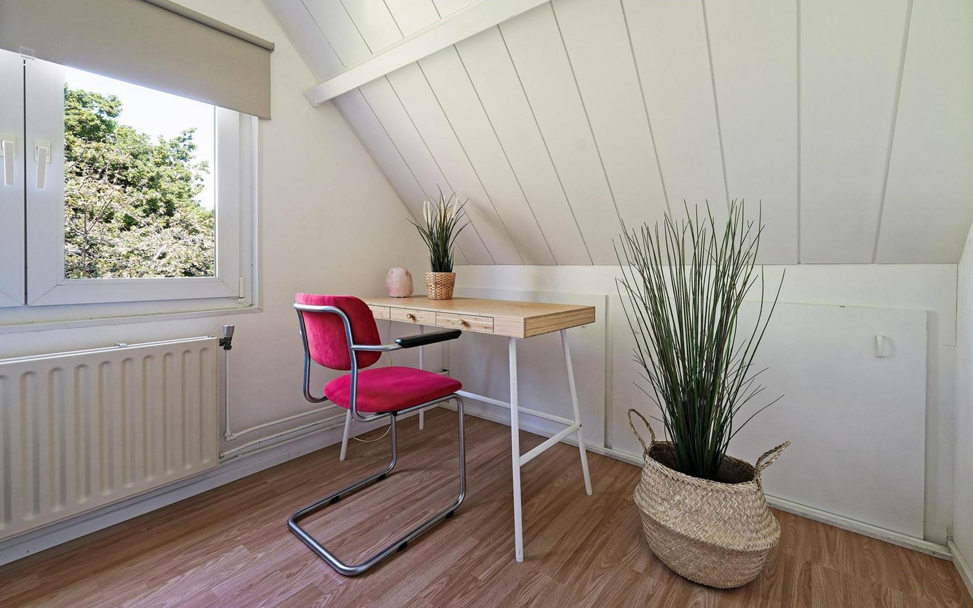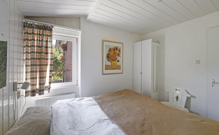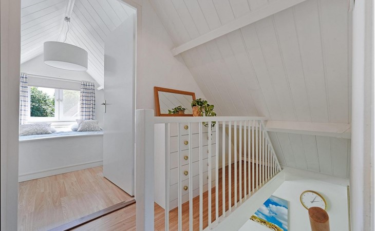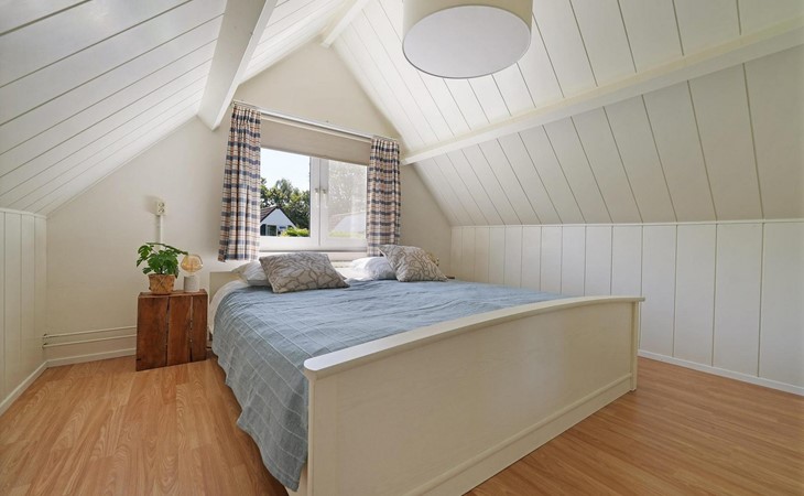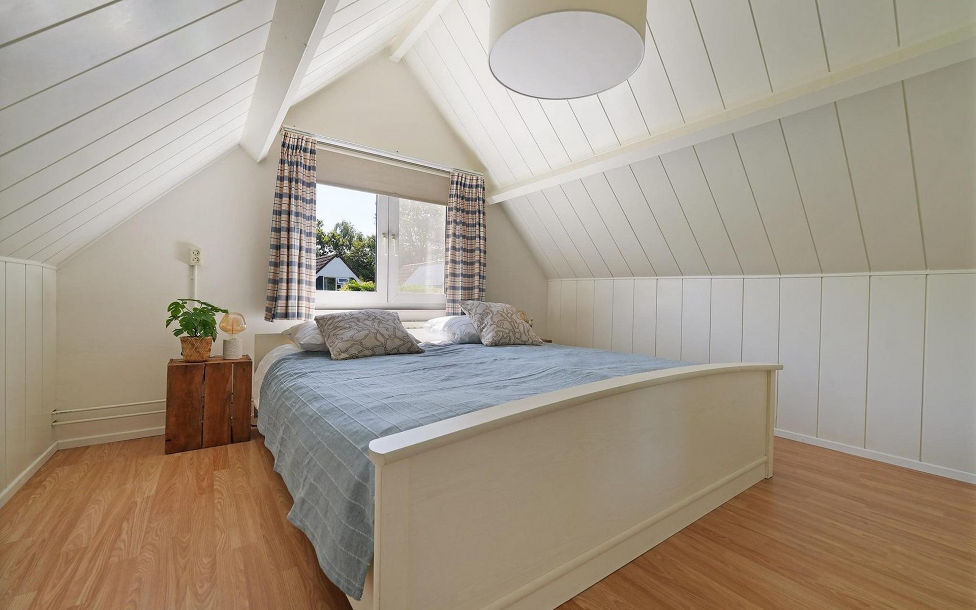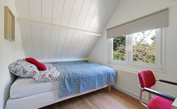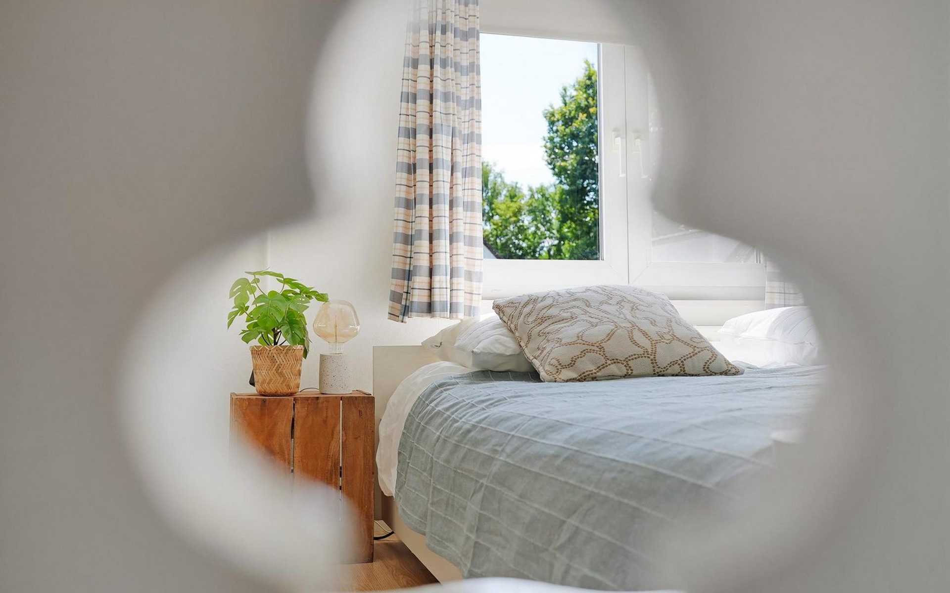 Zwei weitere Schlafzimmer befinden sich im Obergeschoss. Der große Raum beherbergt ein Doppelbett 180 x 200 cm sowie im kleineren Zimmer steht ein einseitig zugängliches Doppelbett 160 x 200 cm und ein kleiner Schreibtisch.