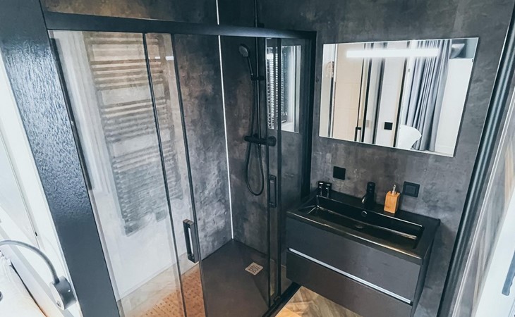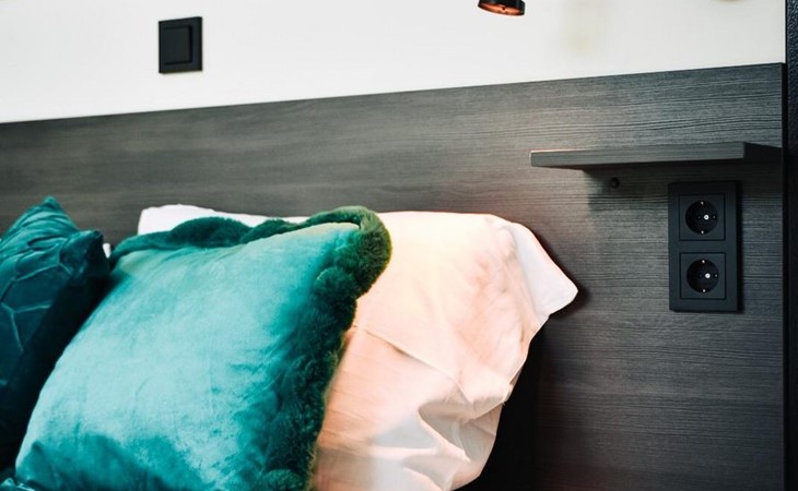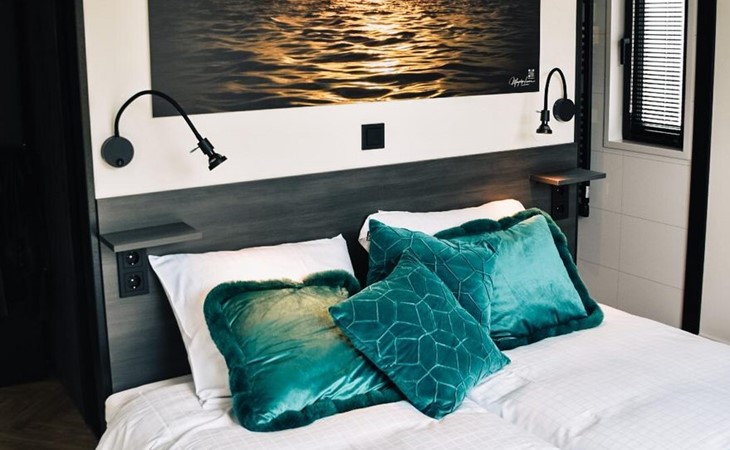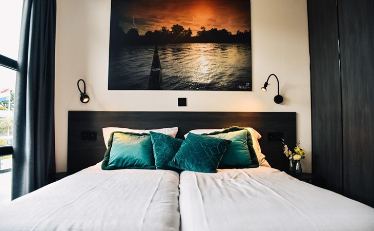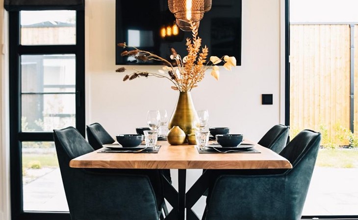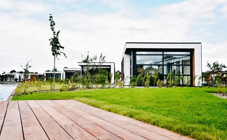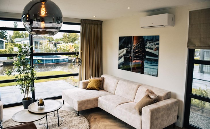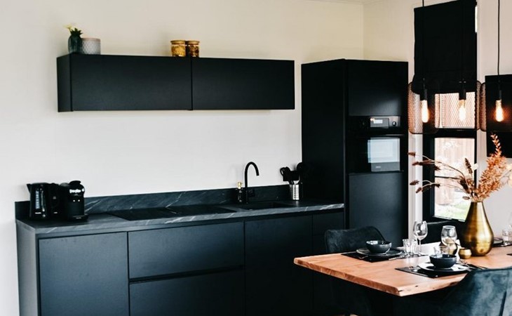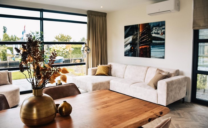 Die Villen bieten durch die hohen Decken und großen Glasfenster ein sehr großzügiges Raumgefühl. Ausblick aufs Wasser und viel Sonnenlicht sind garantiert. In der Villa selbst finden Sie ein modernes, geräumiges Wohnzimmer vor, das exklusiv, aber bequem ausgestattet ist, etwa mit einem Ecksofa, einem Essbereich für 4 Personen und einem Flachbildfernseher. Der perfekte Ort, eine gemeinsame Mahlzeit einzunehmen, ein Brettspiel zu spielen oder einfach einen Film zu sehen. In der modernen Küche finden Sie alles, was Sie brauchen, um Ihre kulinarischen Künste unter Beweis zu stellen, darunter einen Kühlschrank mit Gefrierfach, einen Herd mit integriertem Dunstabzug, eine Kombimikrowelle, einen Geschirrspüler und eine Nespresso-Kaffeemaschine.