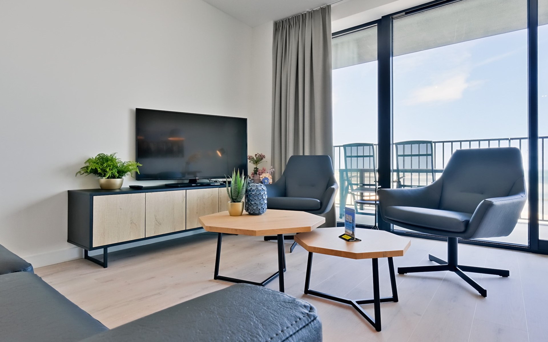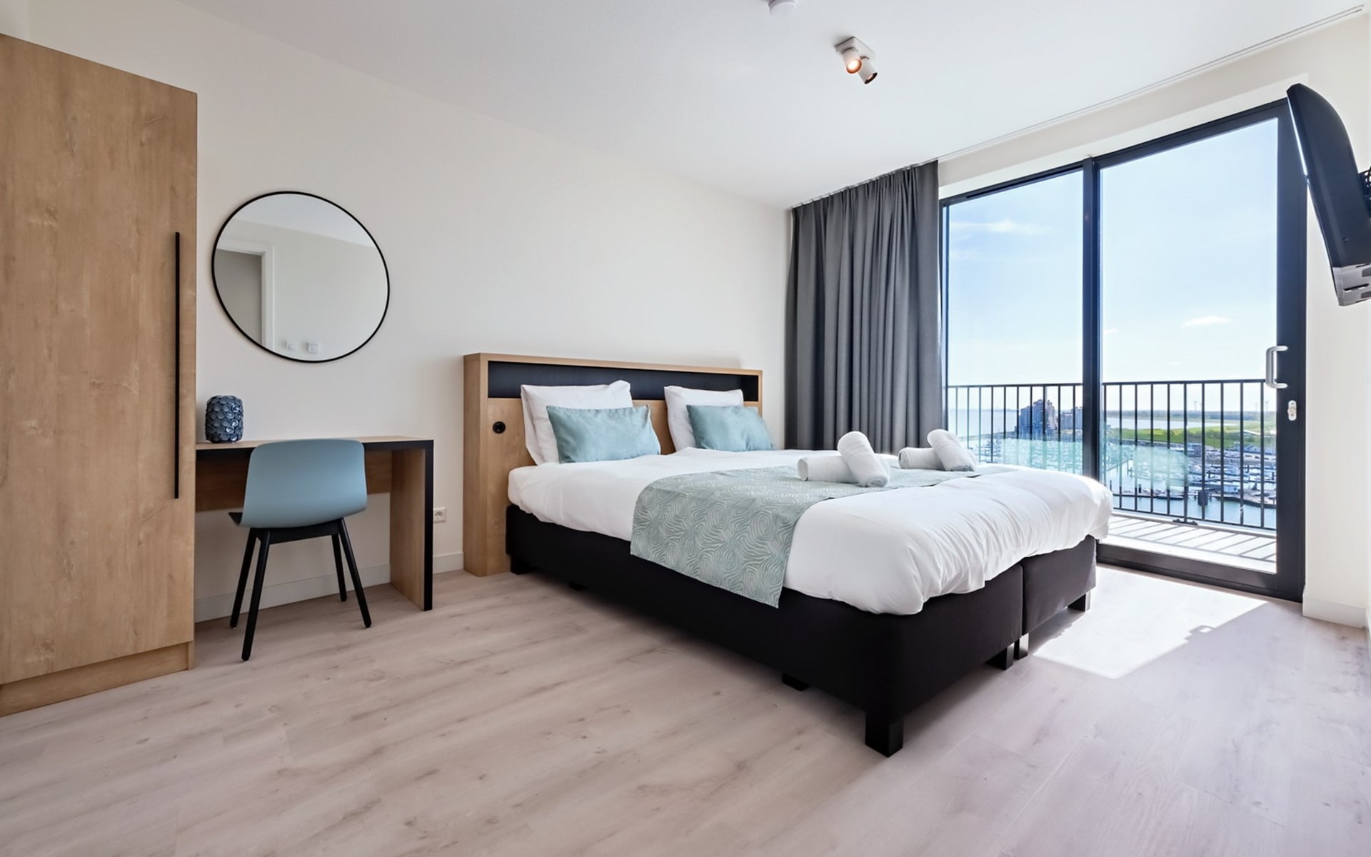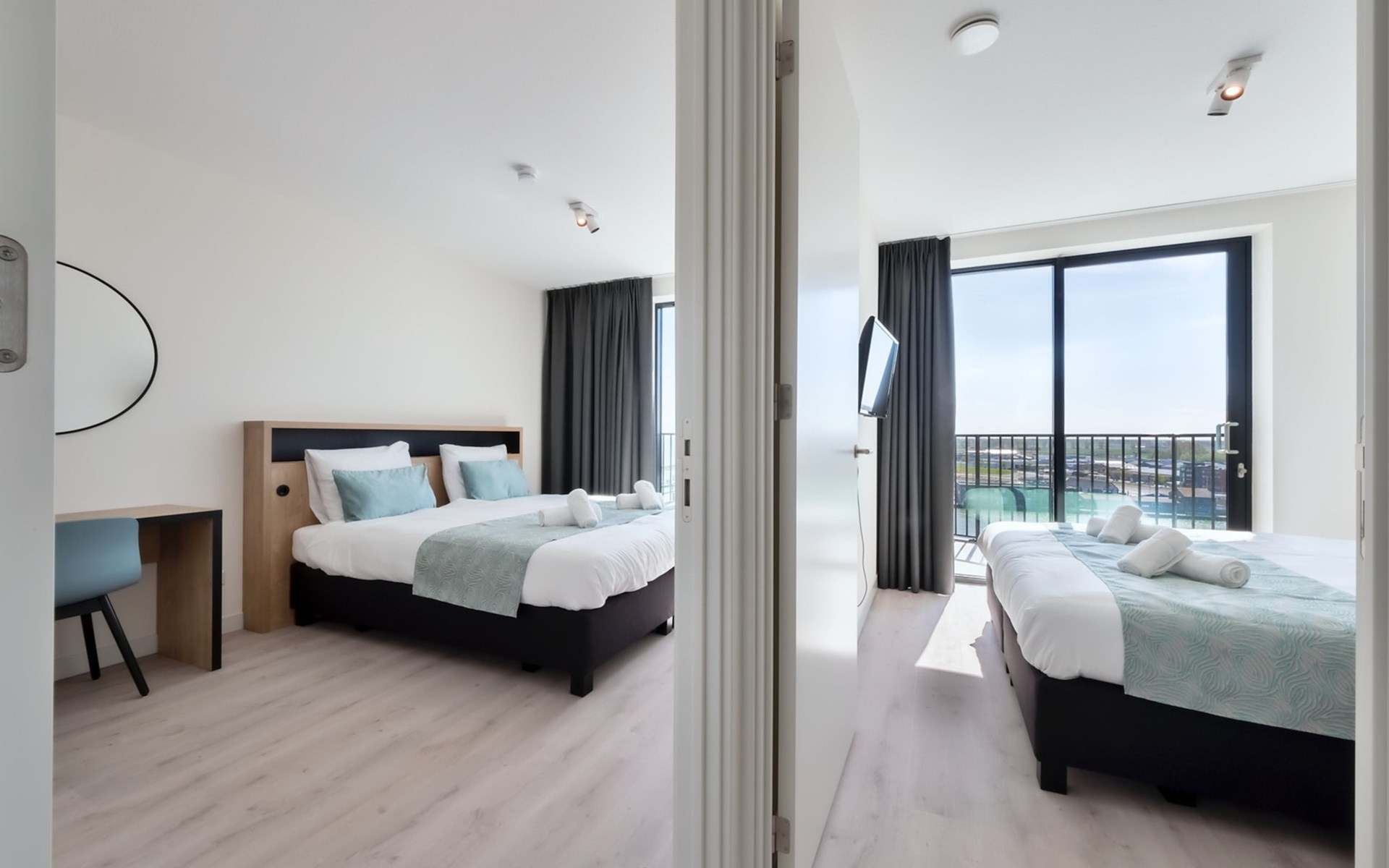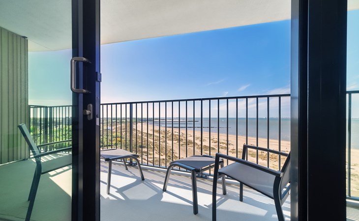 Wohnen Sie in der Ferienwohnung Pharos Dunes Panorama mit 2 Schlafzimmern und 2 Badezimmern bei Dormio Breskens Apartments & Penthouses! Diese moderne Ferienwohnung verfügt über 2 Balkone mit beeindruckendem Blick u.a. auf die Nordsee und die Dünen von Breskens. Die Ferienwohnung befindet sich im oberen Teil des Gebäudes (Etagen 6 bis 10) und ist sowohl über Treppen als auch über einen Aufzug erreichbar. Die Ferienwohnung Pharos Dunes Panorama hat eine Gesamtnutzfläche von ca. 98 m2.