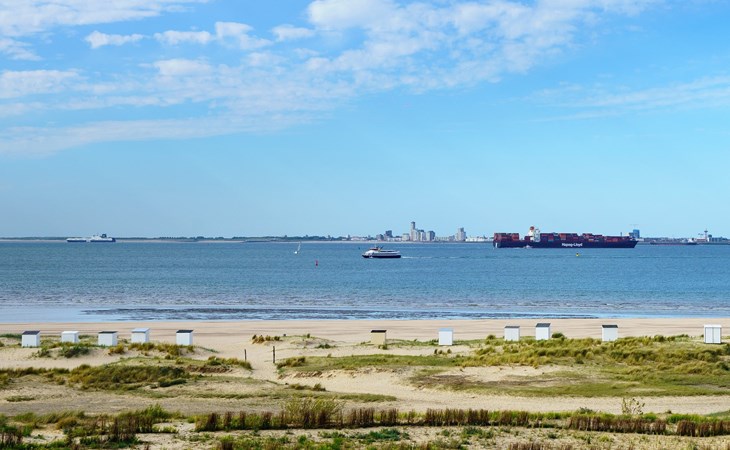 Durch das Wohnzimmer gelangt man auf die großzügige Terrasse, die sich an der Seite der Ferienwohnung erstreckt. Die Terrasse ist mit einer Essecke ausgestattet und befindet sich auf der Westerschelde-Seite mit einem schönen Blick auf das Wasser und den Hafen von Breskens. Genießen Sie die vorbeifahrenden Schiffe mit der Nordsee im Hintergrund. Ein wunderschönes Bild, das sich sehen lassen kann!