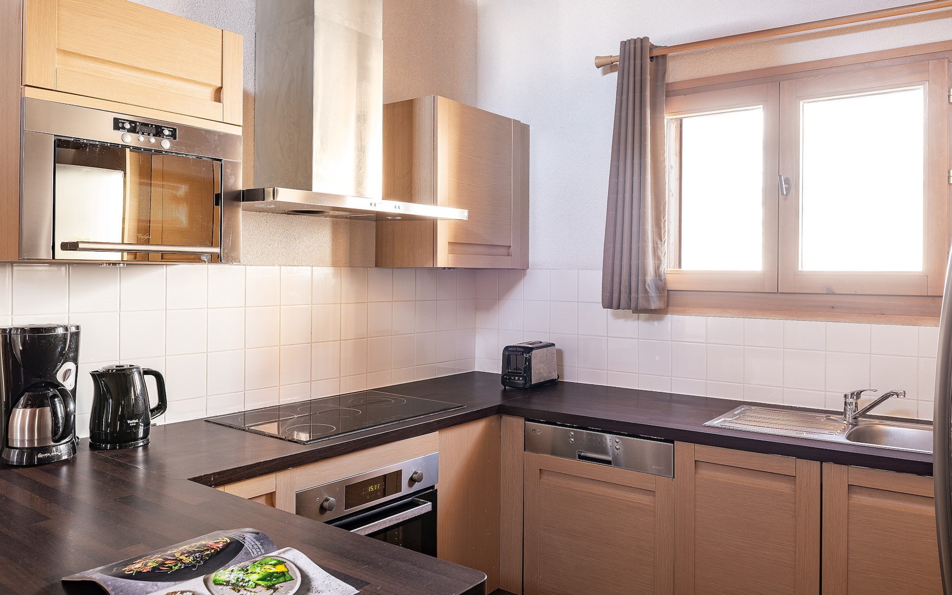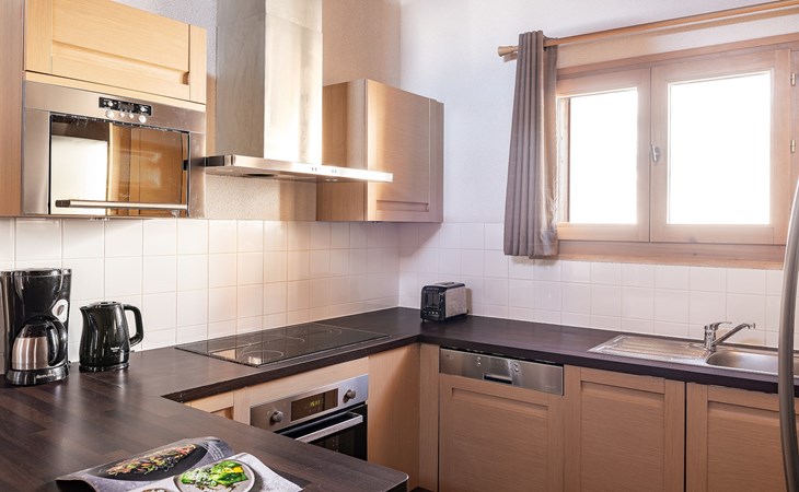 Im Wohnzimmer gibt es ein luxuriöses Schlafsofa für 2 Personen. Das Wohnzimmer hat auch einen Essbereich und eine Sitzecke mit TV. Die offene Küche ist mit Cerankochfeld, Geschirrspüler, Backofen, Mikrowelle/Grill, Kühlschrank, Toaster, Filterkaffeemaschine und Wasserkocher ausgestattet.