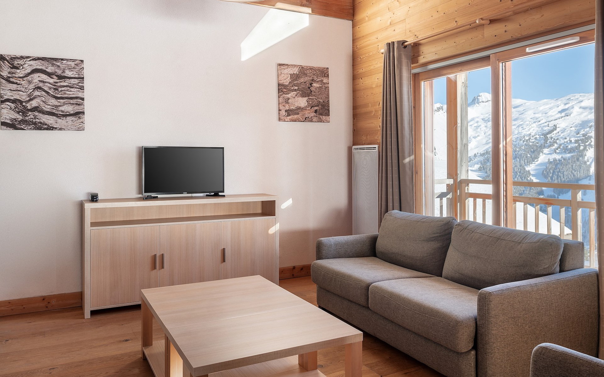 Von der Terrasse und dem Balkon mit Sitzgelegenheit aus haben Sie einen herrlichen Blick auf die umliegenden Berge.