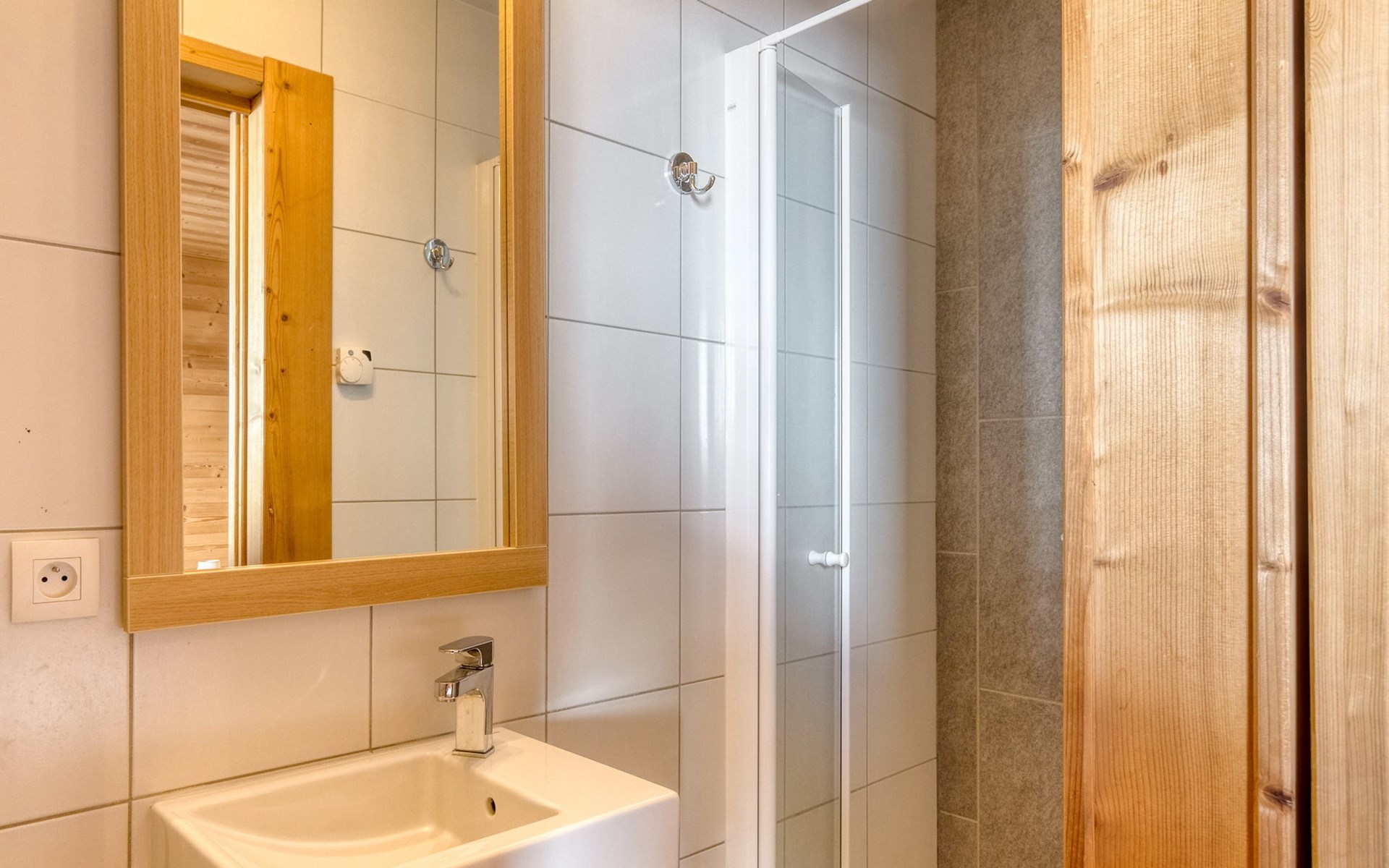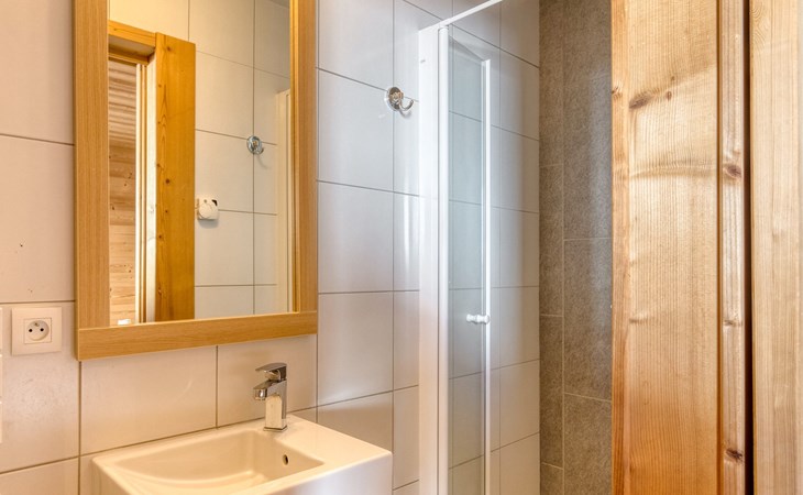 Dieses freistehende Chalet verfügt über 5 Schlafzimmer mit Doppelbett, davon 1 Schlafzimmer mit 2 Einzelbetten, 1 Schlafzimmer mit Etagenbett und 3 Schlafzimmer mit einem Doppelbett. Außerdem gibt es 4 Badezimmer mit Dusche und Toilette, darunter 1 Badezimmer mit Regendusche. Das Chalet hat auch eine separate Toilette.