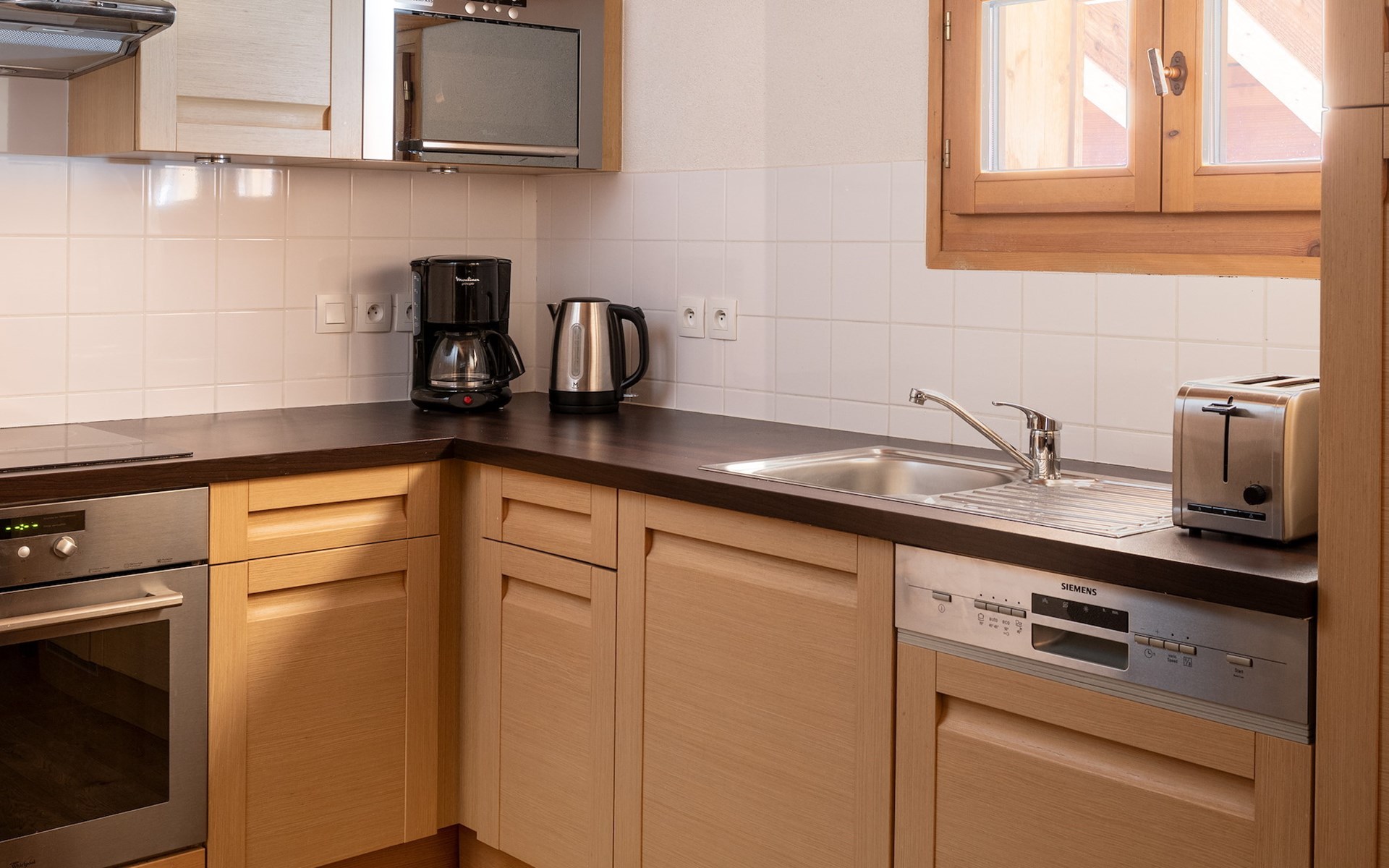 Die geschmackvoll eingerichtete Wohnung verfügt über ein Wohnzimmer mit einer Sitzecke, einem Schlafsofa für 2 Personen, einem Fernseher und einem Essbereich. Die Küche ist komplett ausgestattet mit Kühlschrank, Cerankochfeld, Backofen, Mikrowelle, Geschirrspüler, Toaster, Filterkaffeemaschine und Wasserkocher.