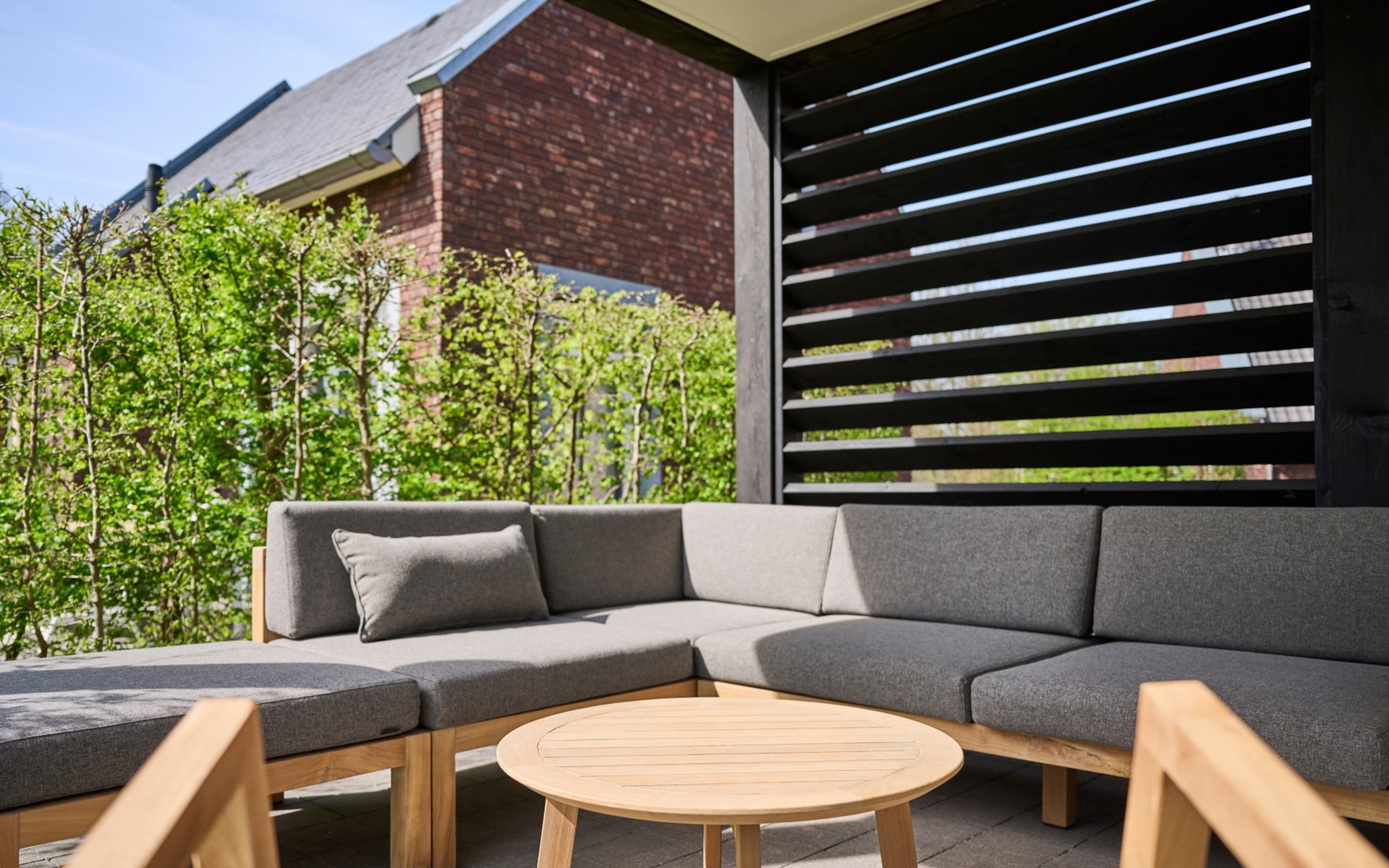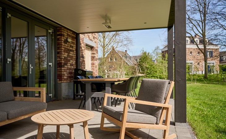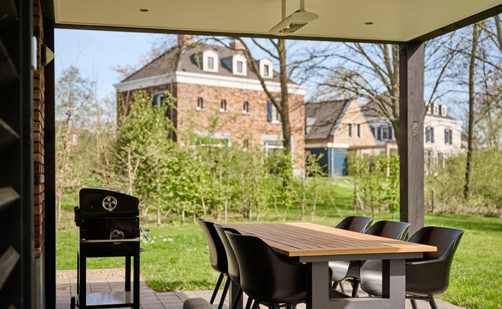 Vom Wohnzimmer aus haben Sie Zugang zur geräumigen Veranda mit einer Gartengarnitur, einem bequemen Loungeset, einer Heizung und einem Grill. Perfekt, um das ganze Jahr über draußen zu sitzen!