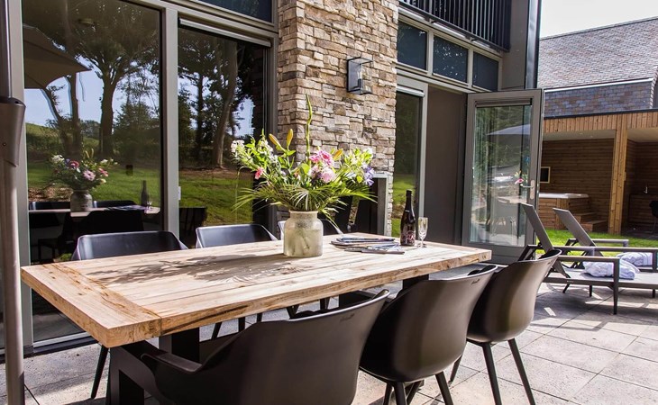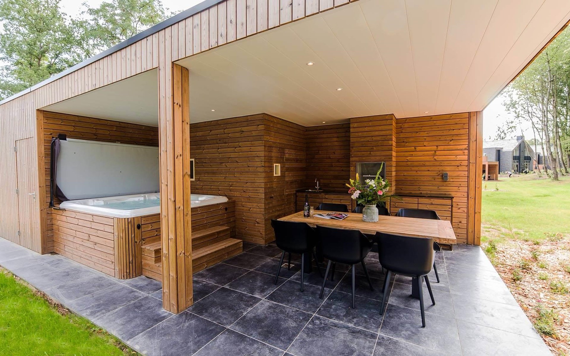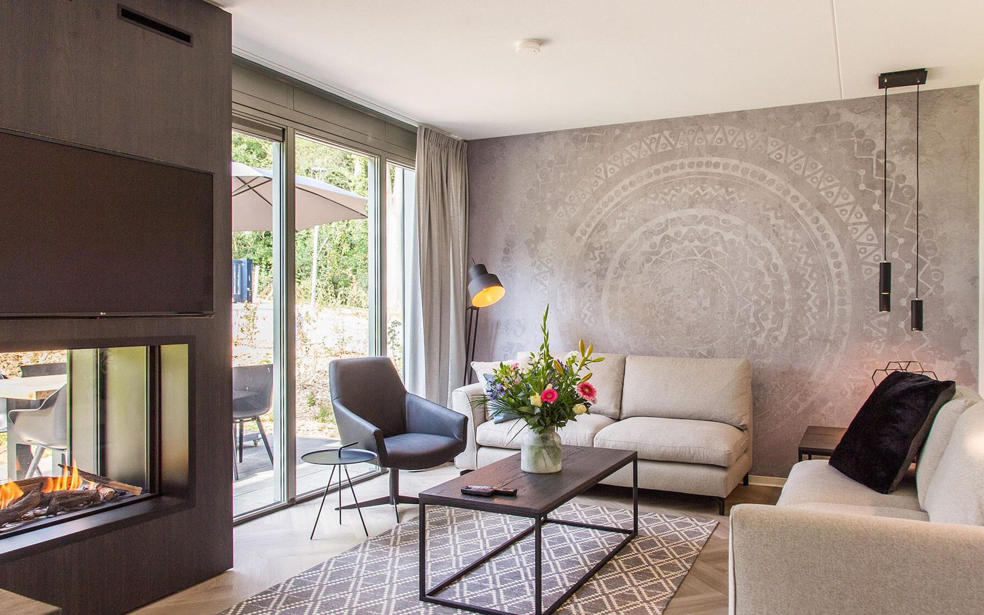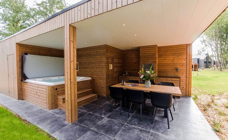 Die Hertogenvilla, mit einer Fläche von ca. 170 m2, ist eine sehr luxuriöse Villa für 6 Personen mit viel Licht und Raum. Das Ferienhaus verfügt über 3 Schlafzimmer mit jeweils eigenem Badezimmer. Für einen herrlich entspannenden Aufenthalt ist diese Villa mit allen Bequemlichkeiten ausgestattet! Vom Eingang aus gelangen Sie in ein großzügiges Wohnzimmer mit geräumiger Sitzecke, einem Fernseher und einem gemütlichen Gaskamin. Sie haben in dieser Villa eine offene Küche mit Kochinsel und einen Essbereich. Die Küche ist mit Luxusgeräten ausgestattet darunter ein Wasserhahn für kochendes Wasser, Kombiofen, ein Geschirrspüler und eine Nespresso-Maschine. Die Villa hat 3 Schlafzimmer, jedes mit eigenem En-Suite Badezimmer mit Dusche und Doppelwaschbecken. Eines der Badezimmer verfügt auch über eine Badewanne. Dank der meterhohen Glasfassade an der Rückseite der Villa erhalten Sie im Innenraum sehr viel Tageslicht und eine prächtige Aussicht auf der Umgebung. Vom Wohnzimmer Ihrer Villa aus gelangen Sie über Flügeltüren auf die möblierte Gartenterrasse mit Außenkamin. Im weitläufigen Garten hinter der Villa können Sie exklusiv ein luxuriöses Outdoor-Spa mit einem Air- und Jetstream-Spa, einer Sauna und einer Außendusche genießen. Darüber hinaus verfügen Sie im Garten über eine überdachte Außenküche mit Essbereich. Es gibt 2 Parkplätze neben dem Haus. Sie können selbstverständlich das kostenlose WLAN nutzen. Mehrere Häuser sind mit einer Ladestation für elektrische Autos ausgestattet. Bei Ihrer Reservierung können Sie Ihre Präferenz angeben (je nach Verfügbarkeit).
