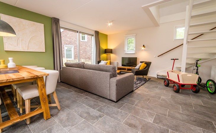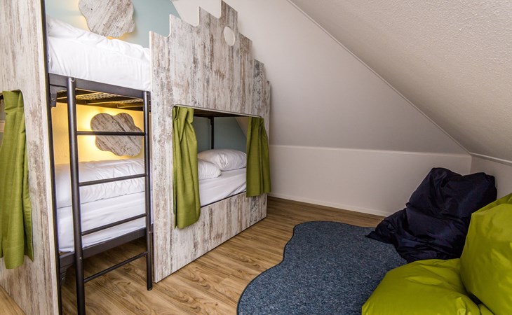 Dieses Kidshaus im Dormio Resort Maastricht ist ideal für Eltern mit kleinen Kindern! Das Koopliedenhuis Komfort Kids ist nämlich ein kinderfreundliches Haus für 4 Erwachsene und 2 Kinder. Dieses freistehende Haus hat 3 Schlafzimmer, 1 Badezimmer und eine Fläche von ca. 94 m2. Unsere Kidshäuser befinden sich im geselligen Kidsviertel des Dormio Resort Maastricht. Das Kidsviertel ist ein Teil des Resorts ist speziell für Familien mit kleinen Kindern gedacht und wird von einer niedrigen Hecke mit einem Eingangstor umschlossen. Auf dem gemeinsamen Spielplatz, der an die hinteren Gärten der Kidshäuser grenzt, finden Sie mehrere Spielgeräte, an denen sich die Kinder mit ihren neuen Urlaubsfreunden austoben können. Das Wohnzimmer des Koopliedenhuis Komfort Kids verfügt über einen Essbereich und einer Sitzbereich mit Fernseher. Die luxuriöse Küche ist komplett ausgestattet mit einem Kombiofen, einem Geschirrspüler, Wasserkocher, Kochfelds, Toaster und einer Nespresso-Maschine. Durch Flügeltüren gelangt man auf die möblierte Terrasse mit Blick auf den eingezäunten Spielplatz, auf dem die Kinder spielen können. Es gibt 3 Schlafzimmer, 2 mit 2 Einzelbetten und 1 mit einem Etagenbett für Kinder. Kinder werden hier einen tollen Urlaub verbringen, denn im Kinderzimmer gibt es auch eine Playstation mit Sitzsäcken. Außerdem gibt es eine Kommode und ein Kinderbett. Im Haus gibt es auch einen Bollerwagen. Das Badezimmer ist mit einer Badewanne, Dusche, Waschbecken und einer Toilette ausgestattet. Es gibt auch eine separate Toilette und eine Waschmaschine. Natürlich wurde an die Sicherheit gedacht: Kindersicherungen an den Schränken, kinderfreundliche Steckdosen und alle Treppen sind mit einem Treppenschutzgitter ausgestattet. Es gibt einen Parkplatz direkt neben dem Haus. Sie können das kostenlose WLAN nutzen. Haustiere sind in dieser Unterkunft nicht erlaubt.