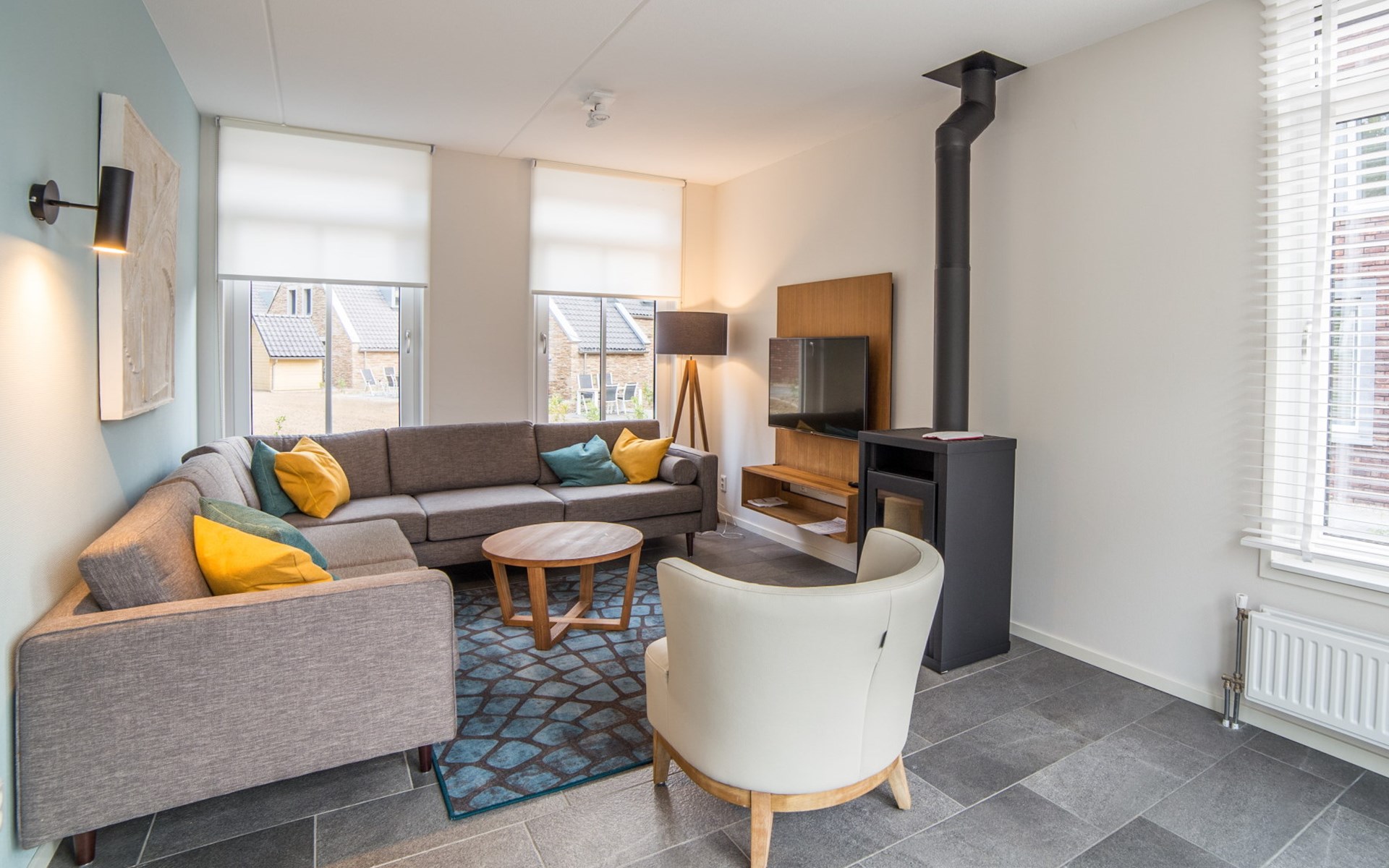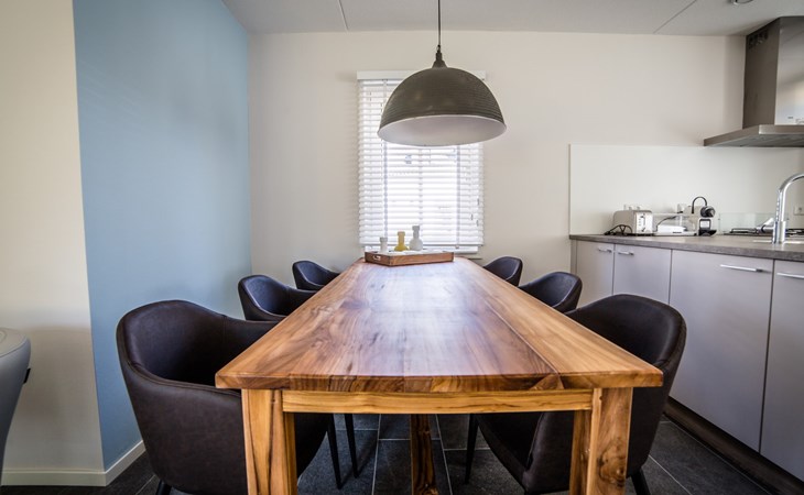 Vom Wohnzimmer aus haben Sie Zugang zur großen Veranda, wo Sie das ganze Jahr über draußen sitzen können. Die Veranda ist mit einer Gartengarnitur, einem bequemen Loungeset und einem Grill ausgestattet.
