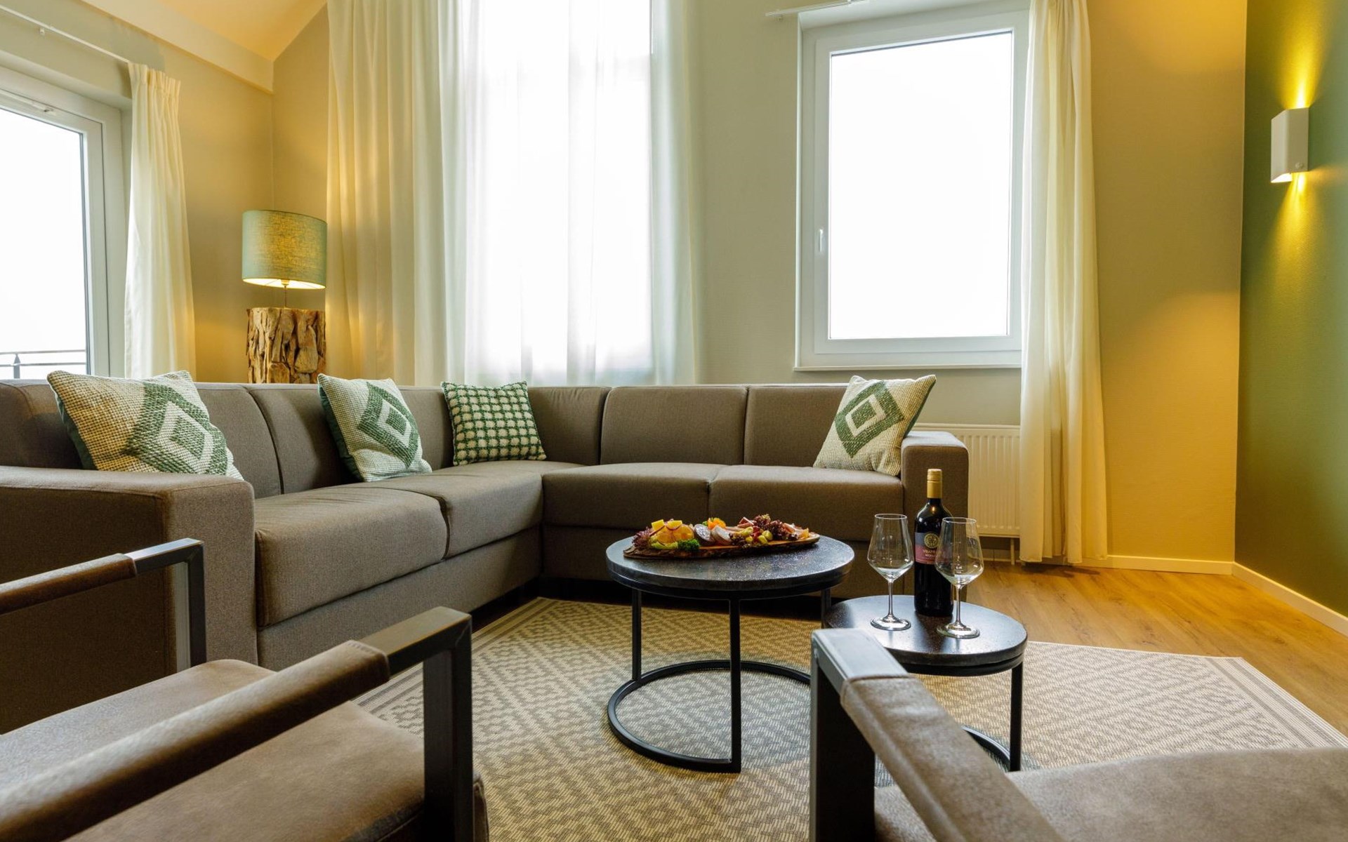Das Penthouse Staffelsee für 6 Personen ist besonders luxuriös und mit allen Annehmlichkeiten ausgestattet. Die 4-Zimmer-Wohnung ist als Maisonette konzipiert und hat eine Fläche von ca. 140 m2 auf zwei Etagen. Sie finden die Unterkunft an der gemütlichen Promenade des Resorts. Hier befinden sich auch die umfangreichen Einrichtungen.