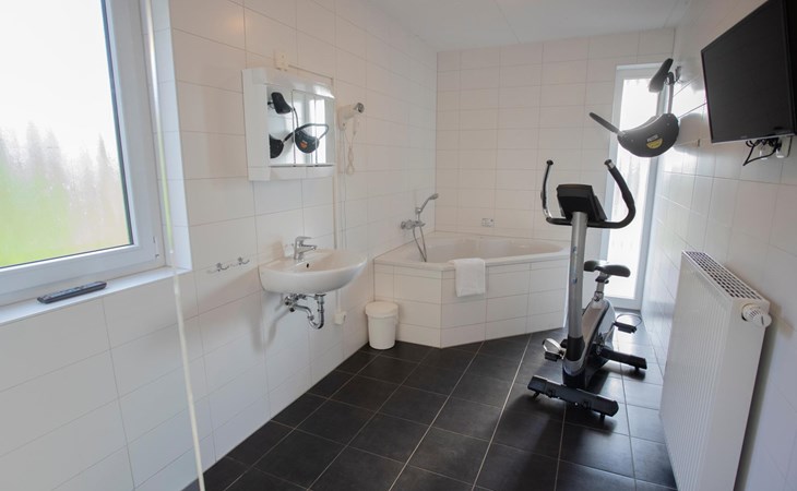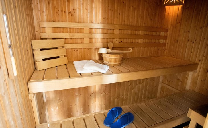 Der Wellnessbereich befindet sich im Untergeschoss. Sie haben Zugang zu einer Sauna, einem Whirlpool, einer Dusche, einem Waschbecken und Fitnessgeräten. Es gibt eine separate Toilette. Darüber hinaus gibt auf dieser Etage 2 Schlafzimmer mit jeweils 2 Einzelbetten und einem Fernseher.