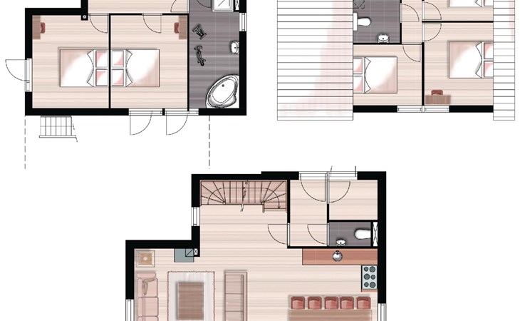 Die Aufteilung der Unterkunft kann variieren. Die Grundrisse und Bilder vermitteln einen guten Eindruck, dienen aber nur zur Veranschaulichung.