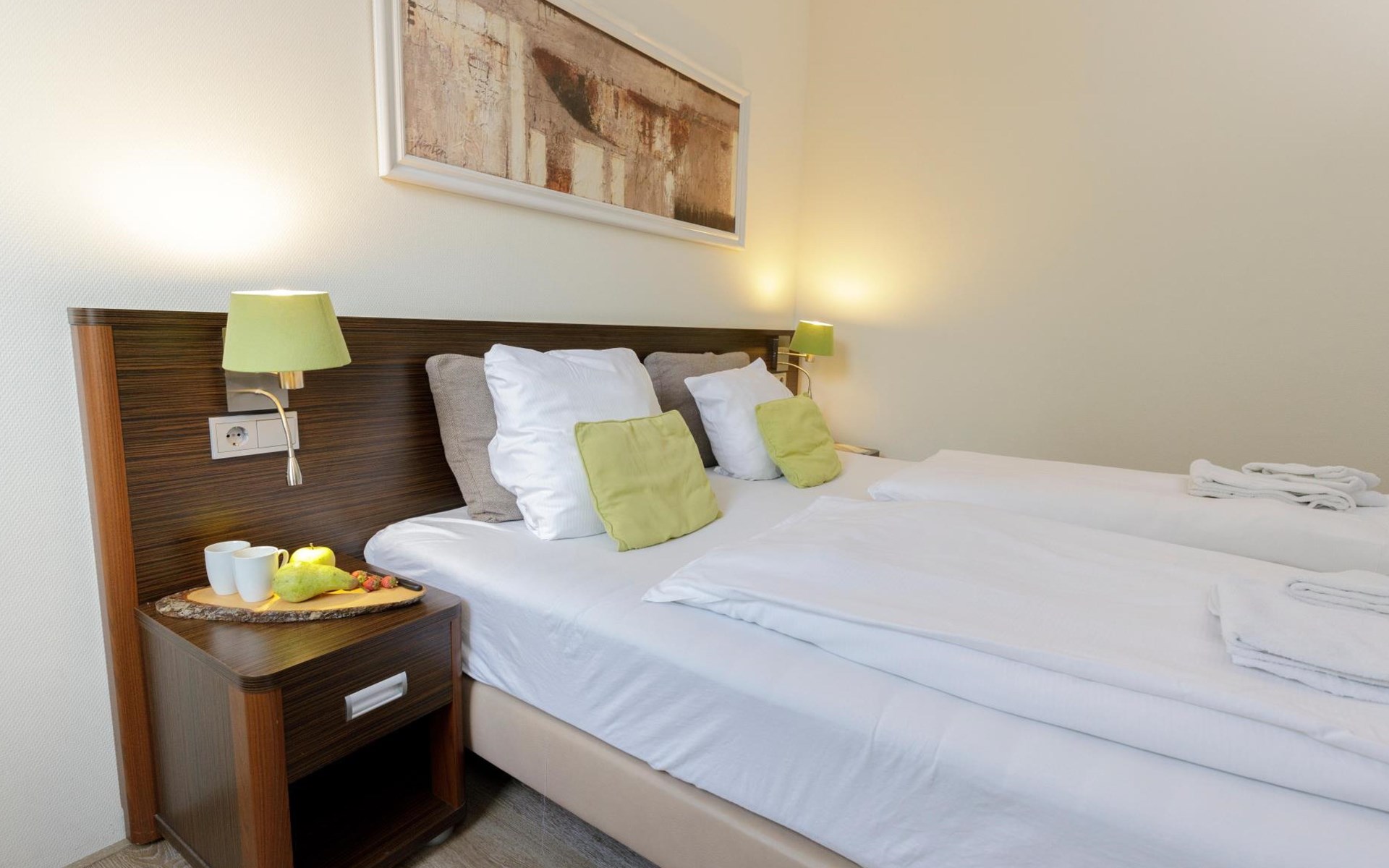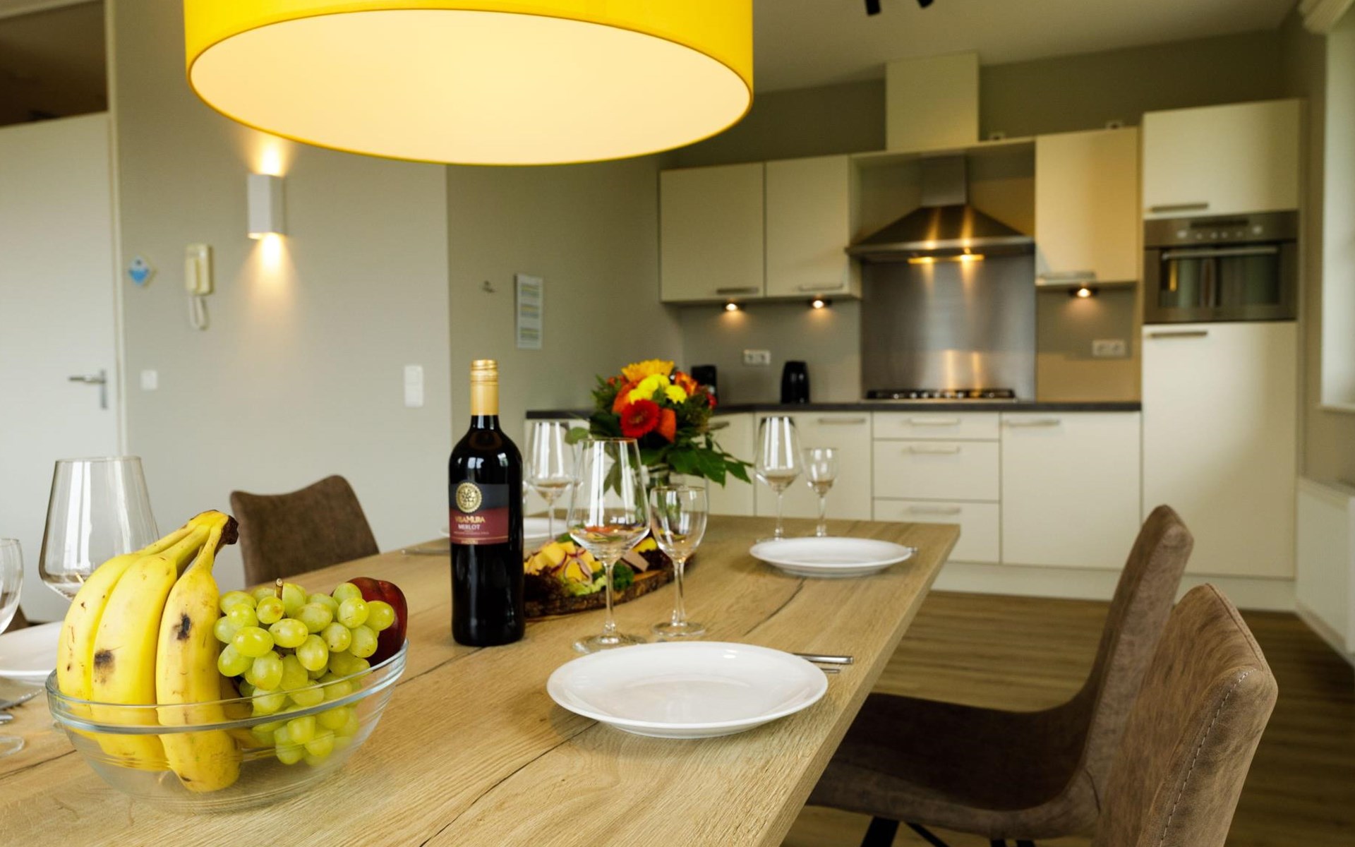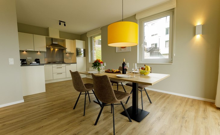 Die Ferienwohnung Fleesensee ist eine luxuriöse Maisonettewohnung, die sich über 2 Etagen erstreckt. Diese 3-Zimmer-Wohnung mit 2 Schlafzimmern und 1 Badezimmer ist für maximal 4 Personen geeignet und hat eine Fläche von ca. 95 m2. Sie finden die Maisonettewohnung an der gemütlichen Promenade des Resorts. Hier befinden sich unter anderem die Restaurants, das Hallenbad und das Freibad, der Supermarkt und der Fahrradverleih.