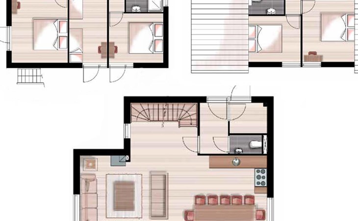Die Aufteilung der Unterkunft kann variieren. Die Grundrisse und Bilder vermitteln einen guten Eindruck, dienen aber nur zur Veranschaulichung.