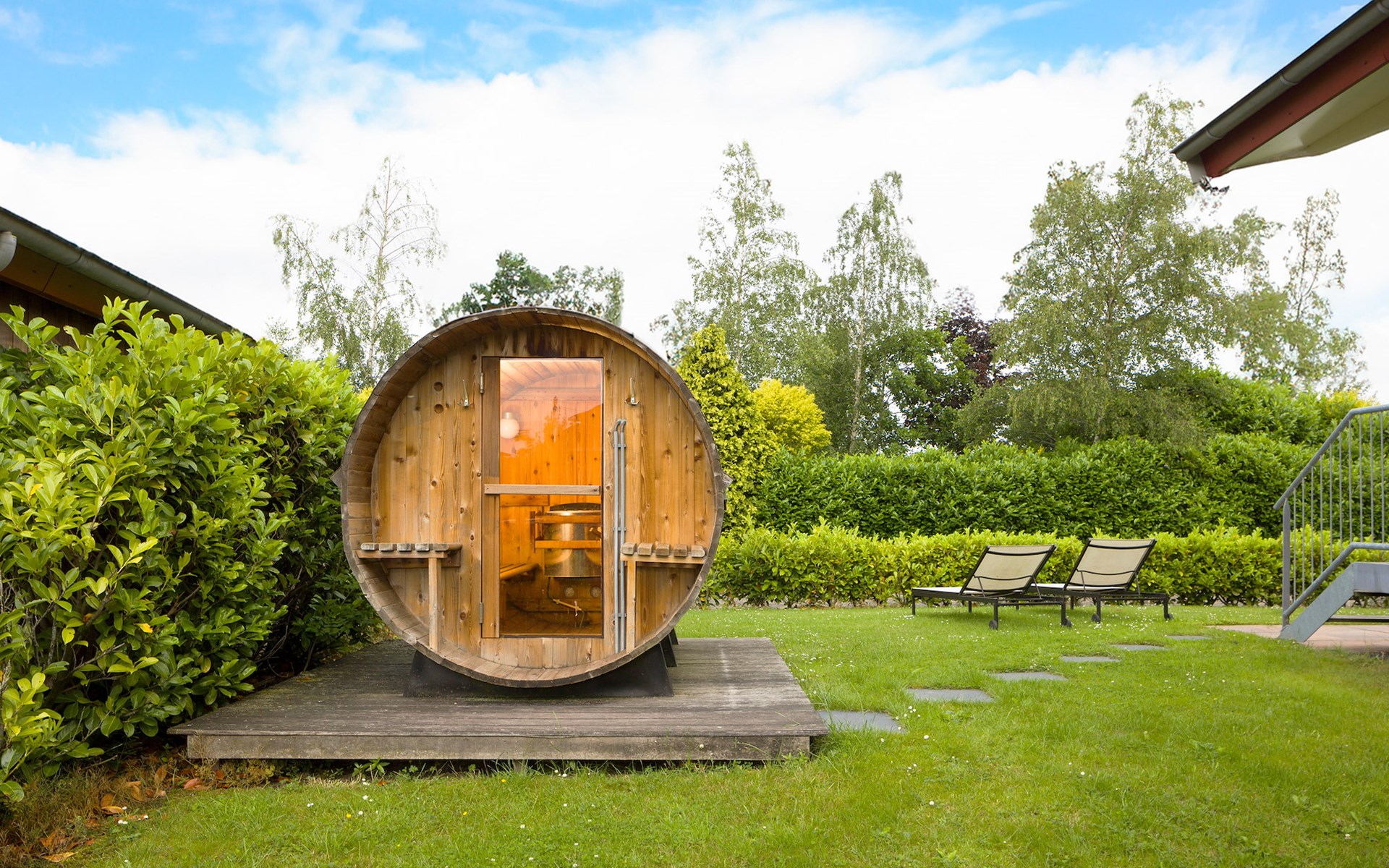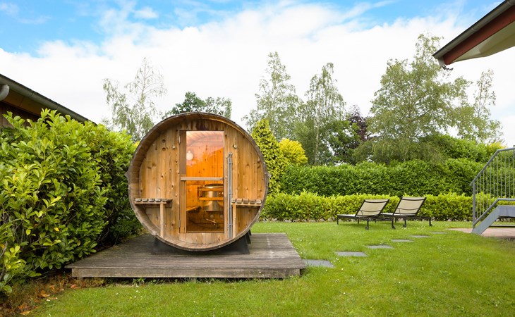Die Villa liegt direkt am Wasser und hat einen eigenen Bootssteg. Außerdem gibt es eine Veranda und eine möblierte Terrasse mit einem Loungeset und Liegestühlen. Außerdem gibt es eine traditionelle Sauna im Garten.